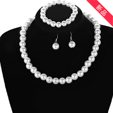軽豪華真珠ネックレスブレスレットピアスセットabs6mm模造真珠三点セットアクセサリー卸売り