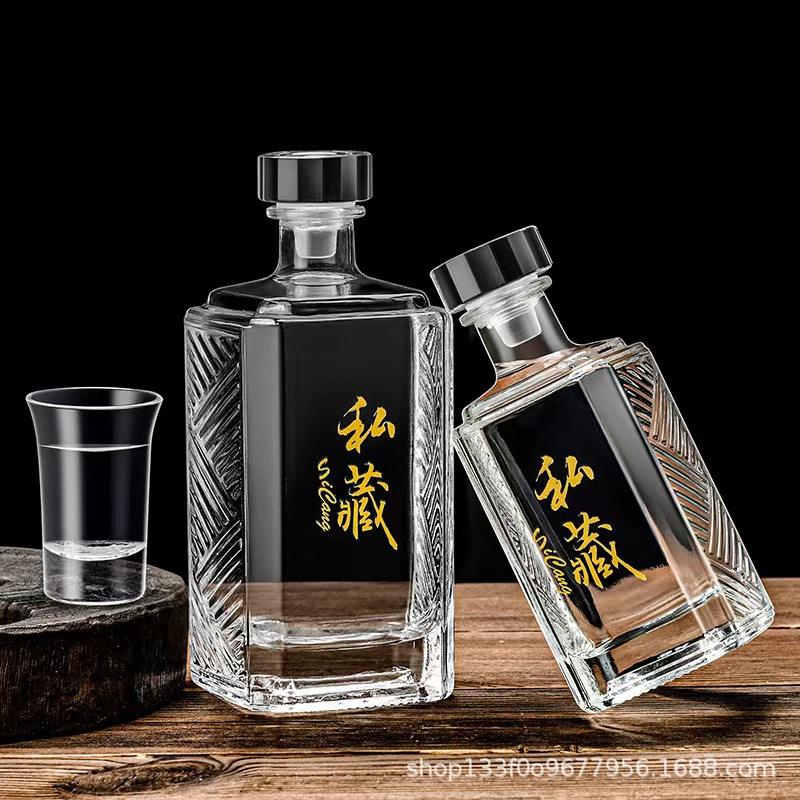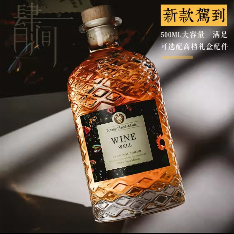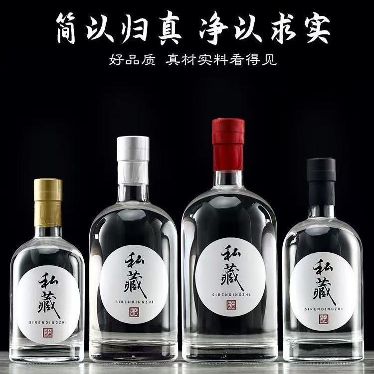 洋酒瓶シール500mlウイスキー包装容器1斤入り空瓶ブランデー酒器透明白酒瓶