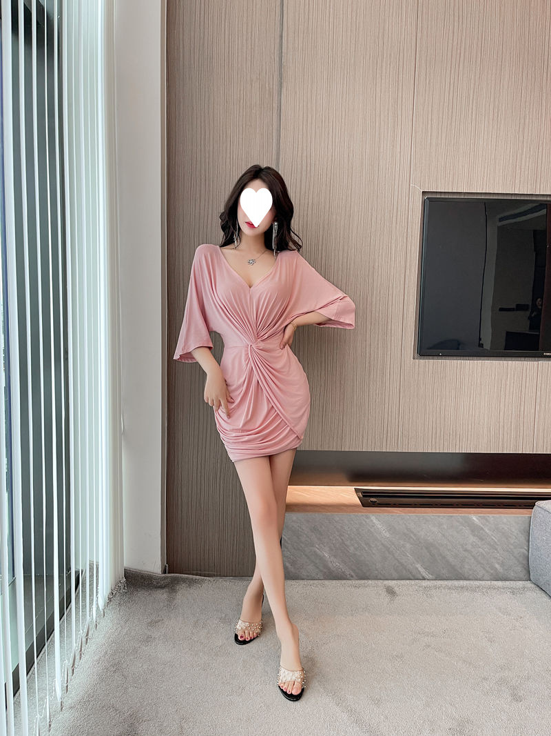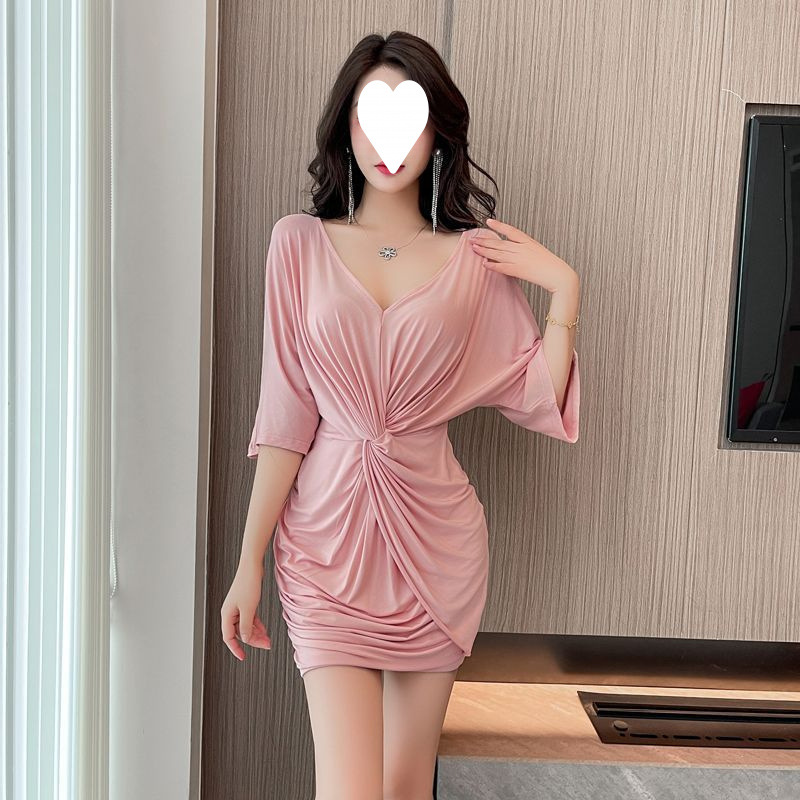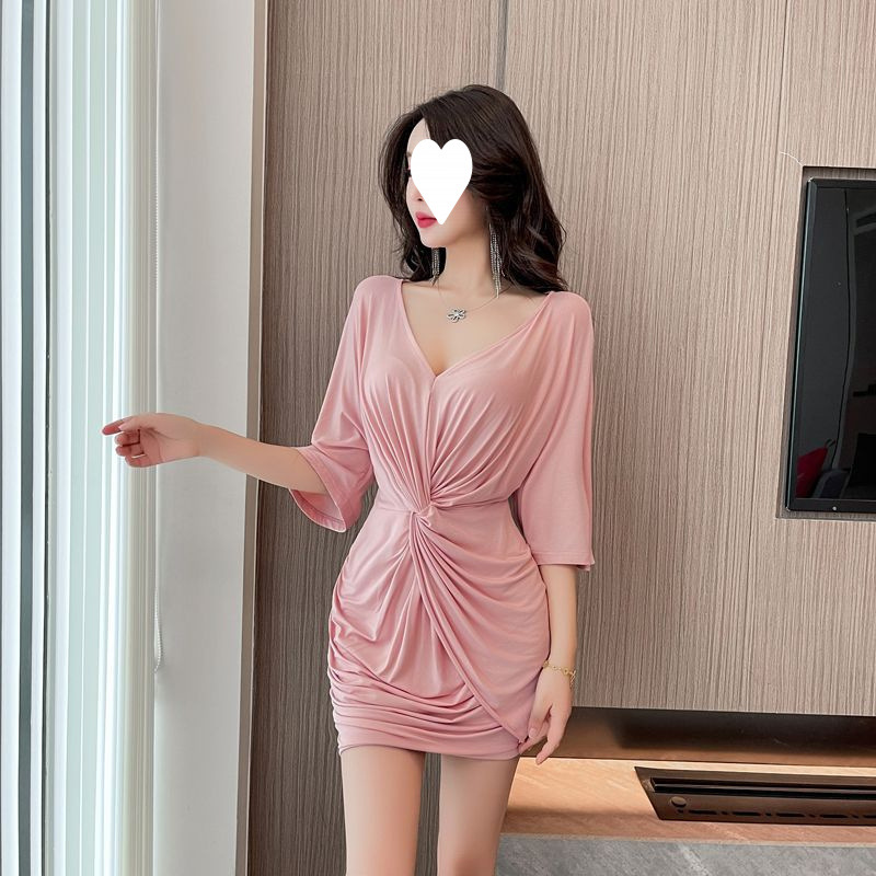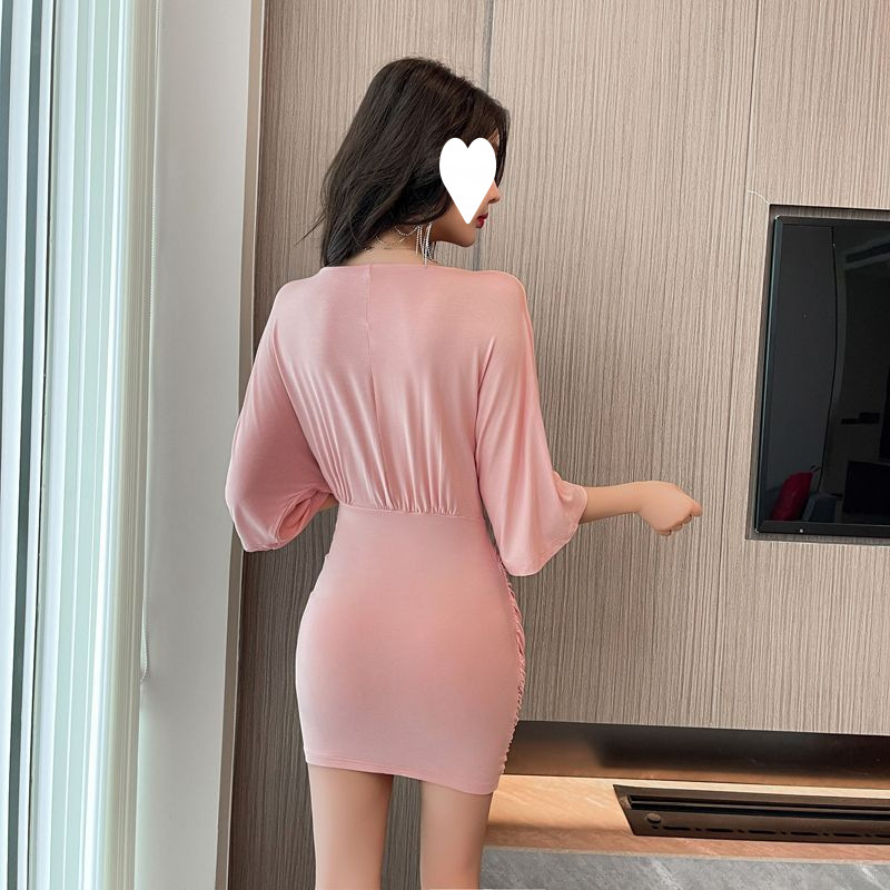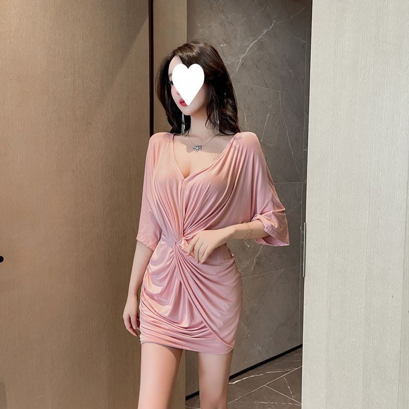 ユニークで美しいピンチウエストスカート、セクシードレス、ツイストデザイン、プリーツお腹カバー、バットスリーブ、ウエストとヒップを包むスカート