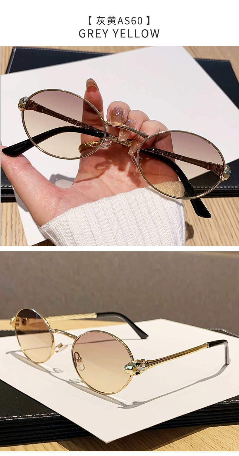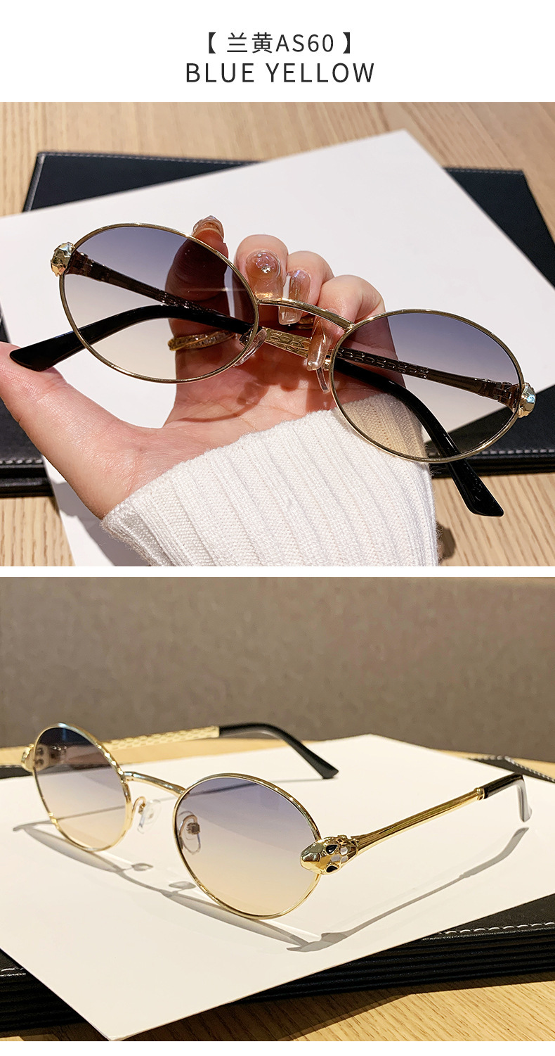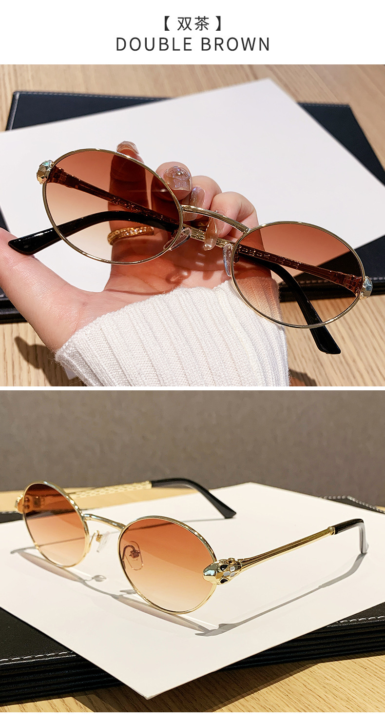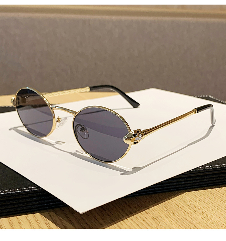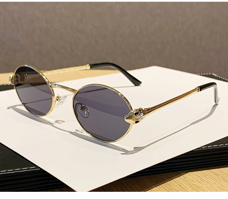ヨーロッパとアメリカンスタイルの新しいメタルオーバルスモールフレームサングラスユニセックスパイロットサンシェードスネークシェイプテンプル