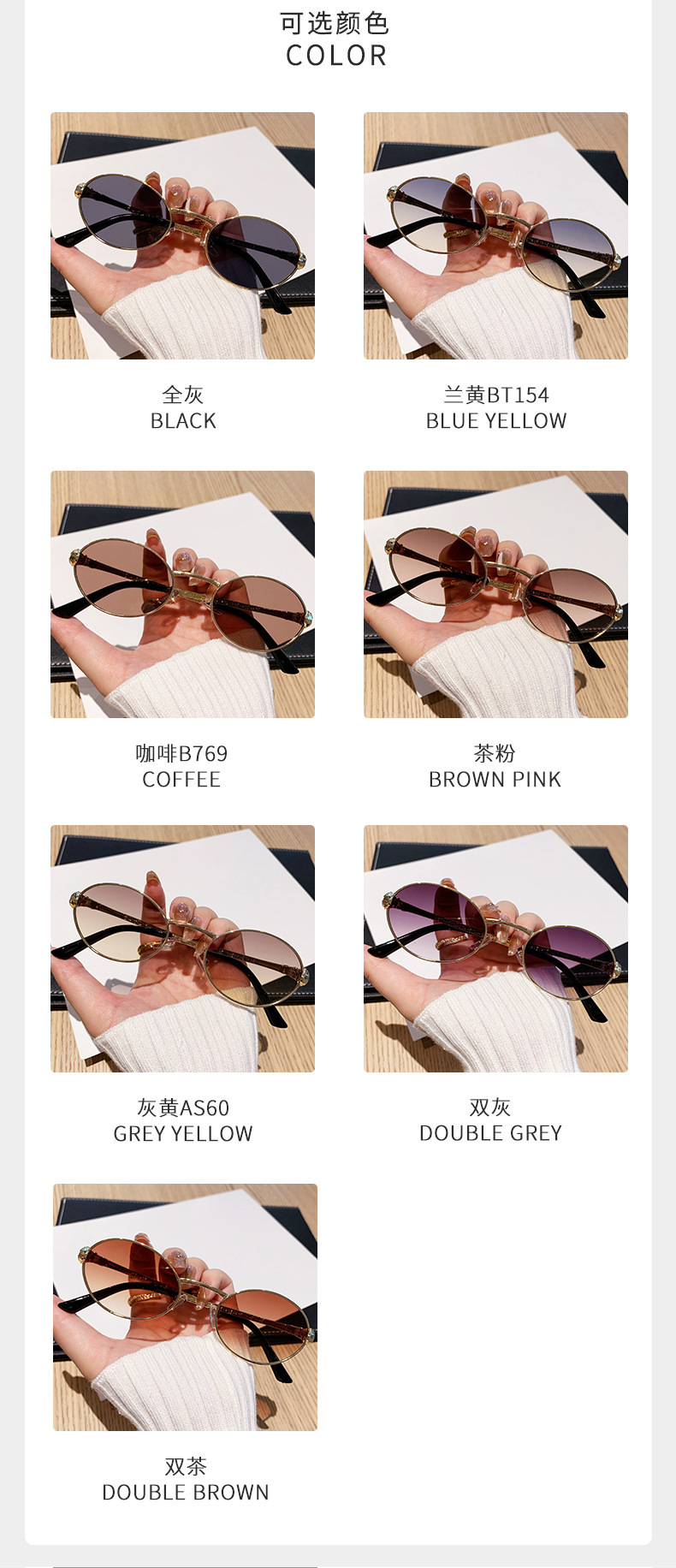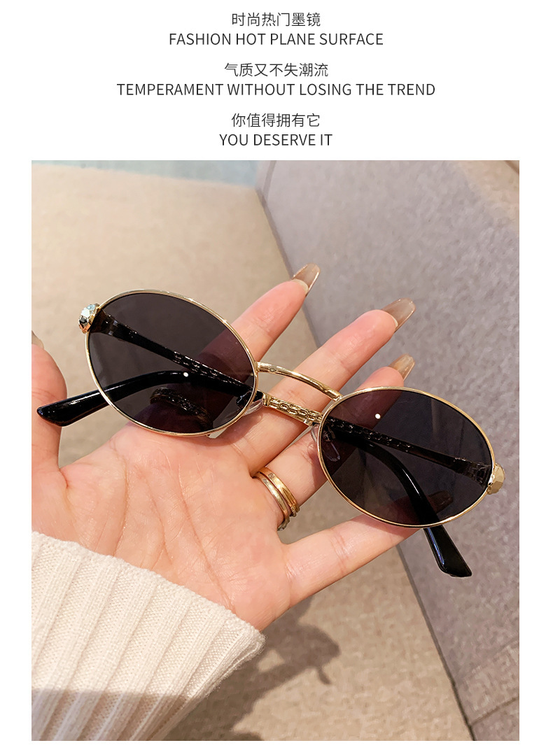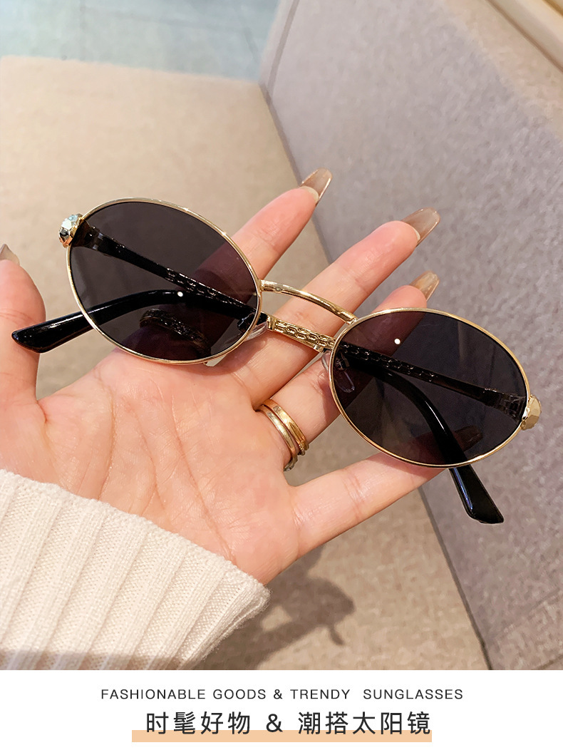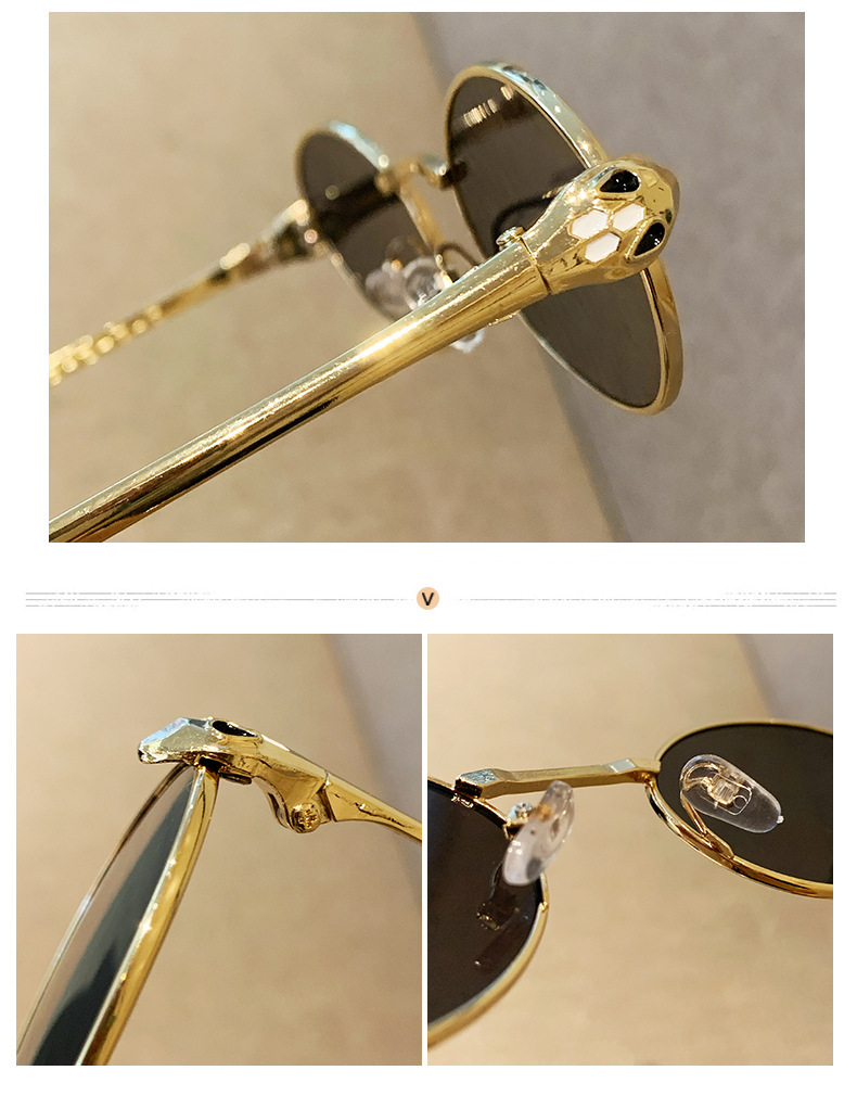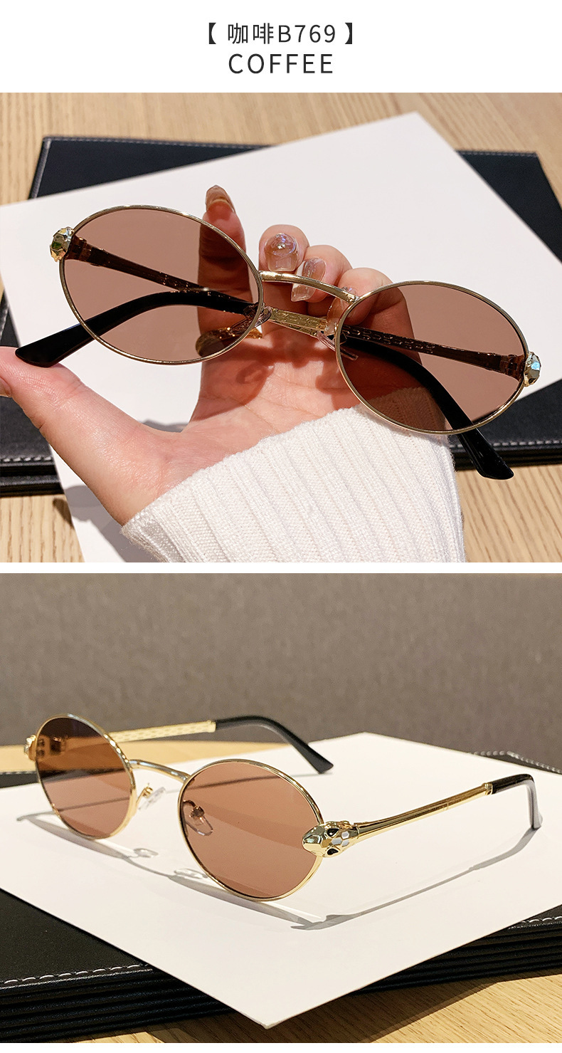 ヨーロッパとアメリカンスタイルの新しいメタルオーバルスモールフレームサングラスユニセックスパイロットサンシェードスネークシェイプテンプル