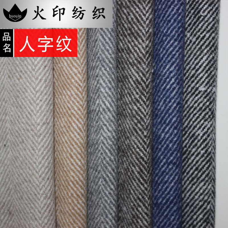 现货|380克50羊毛4厘米粗纺大人字纹呢秋冬大衣外衣裤装时装布料