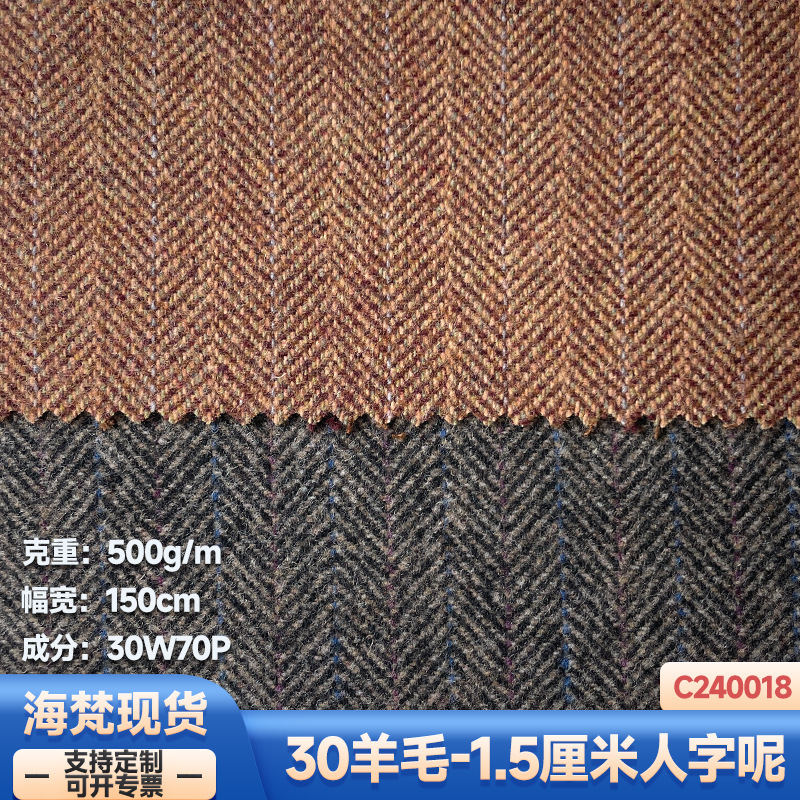 现货|490克37羊毛2厘米精纺弹力人字纹呢服装鞋帽包女装外套面料