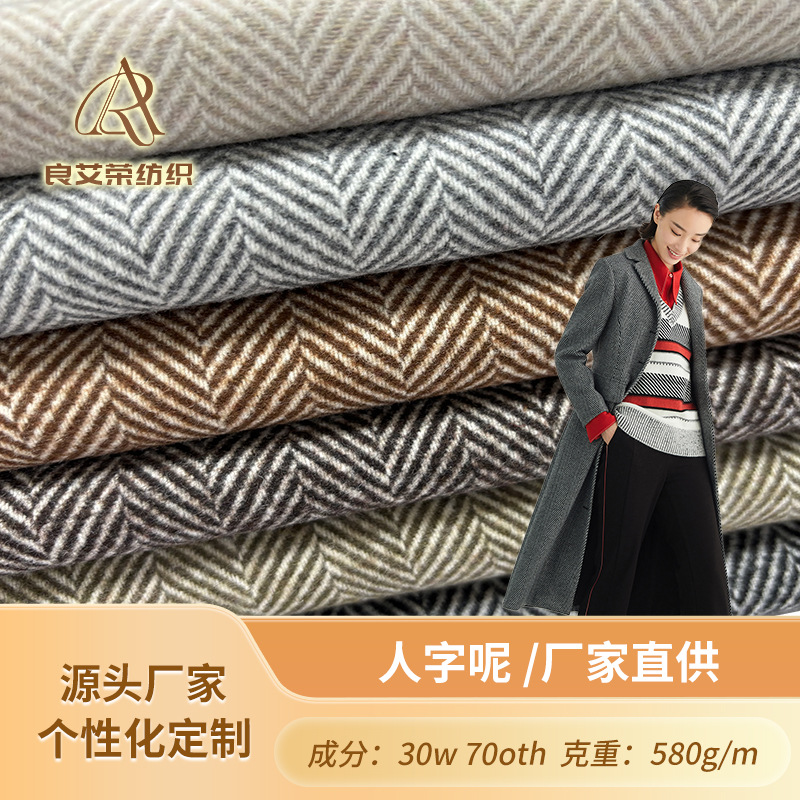 厂家供应2.5cm人字呢30羊毛580g/m 大衣呢面料 高级服饰秋冬外套