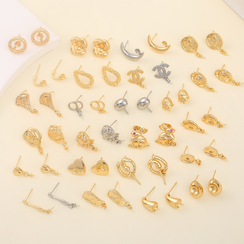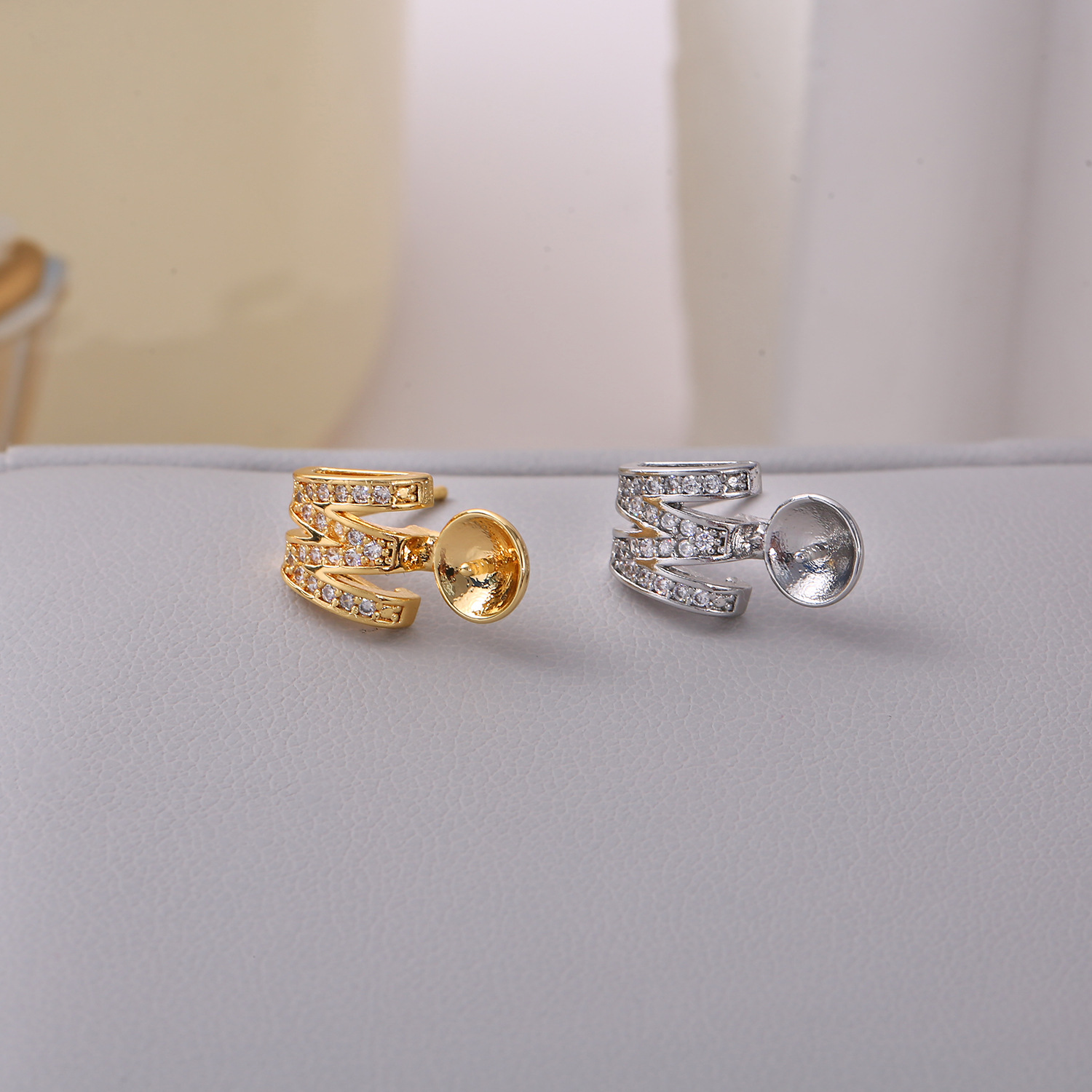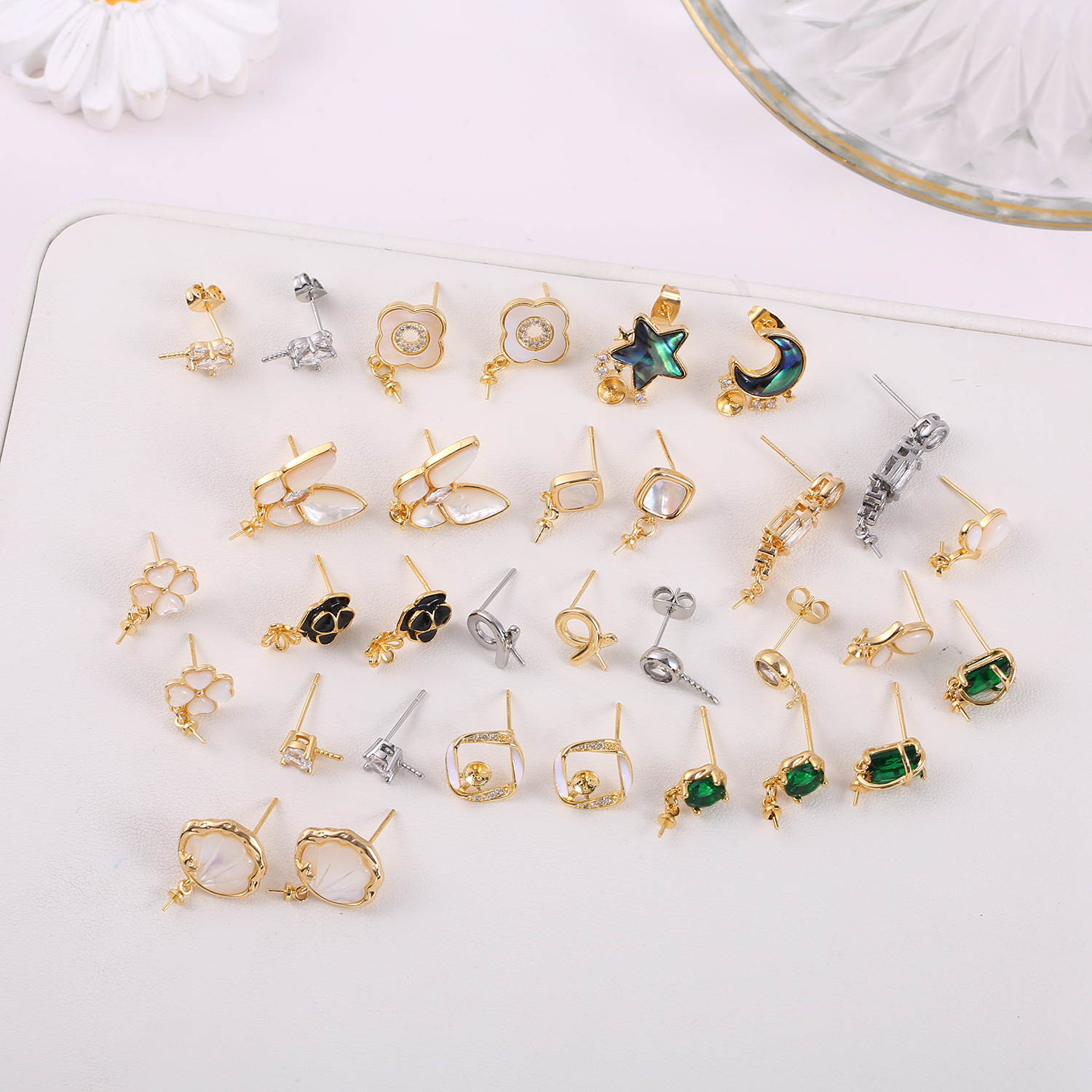 真金电镀18K镀金锆石珍珠耳钉空托高保色手工DIY珍珠耳饰配件女