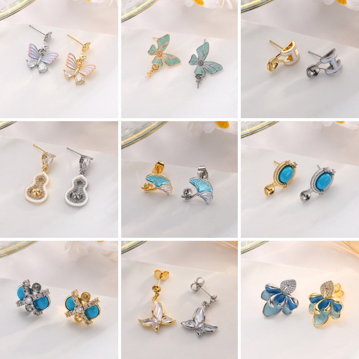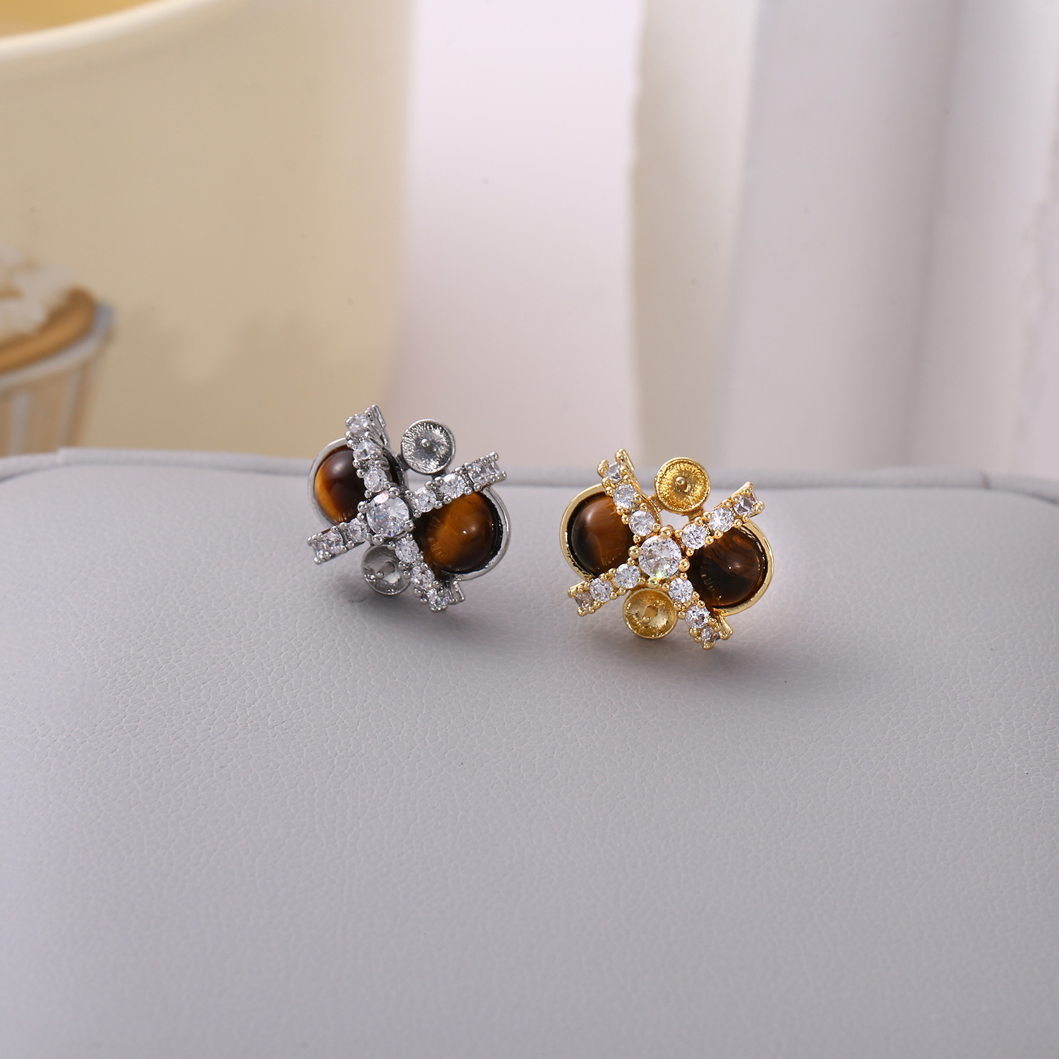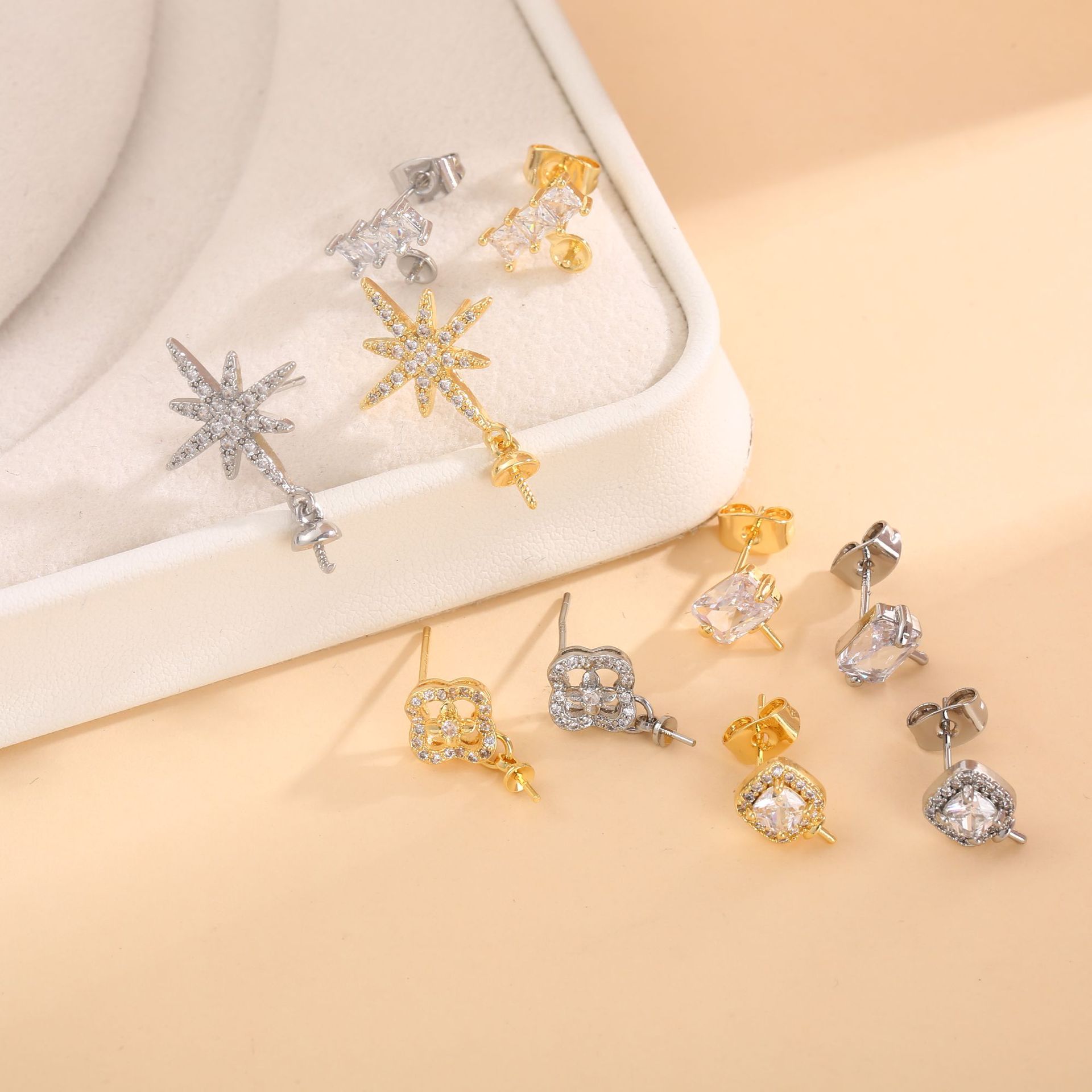 轻奢百搭s952纯银针耳饰女diy气质六芒星四叶草耳钉方形锆石耳饰