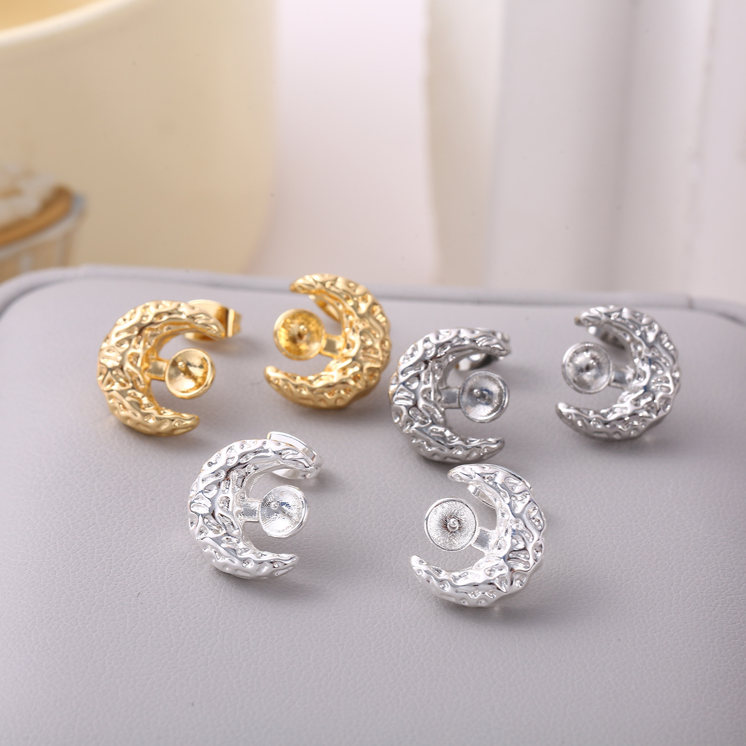 diy耳饰配件月亮星星贝母耳钉托珍珠空托925银针高品质耳环女批发