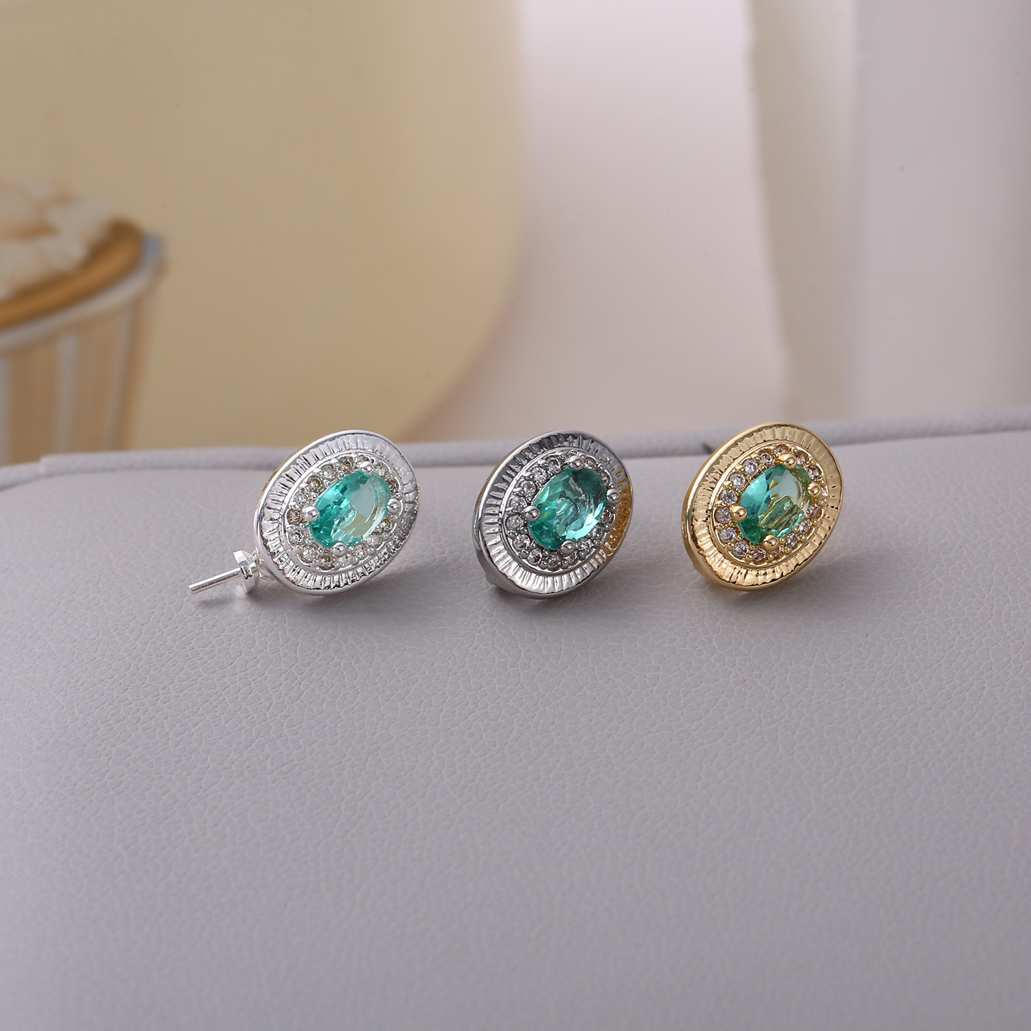 銅メッキ18k真金海藍宝円形S925銀と白の金色にダイヤモンドの部品を入れます。