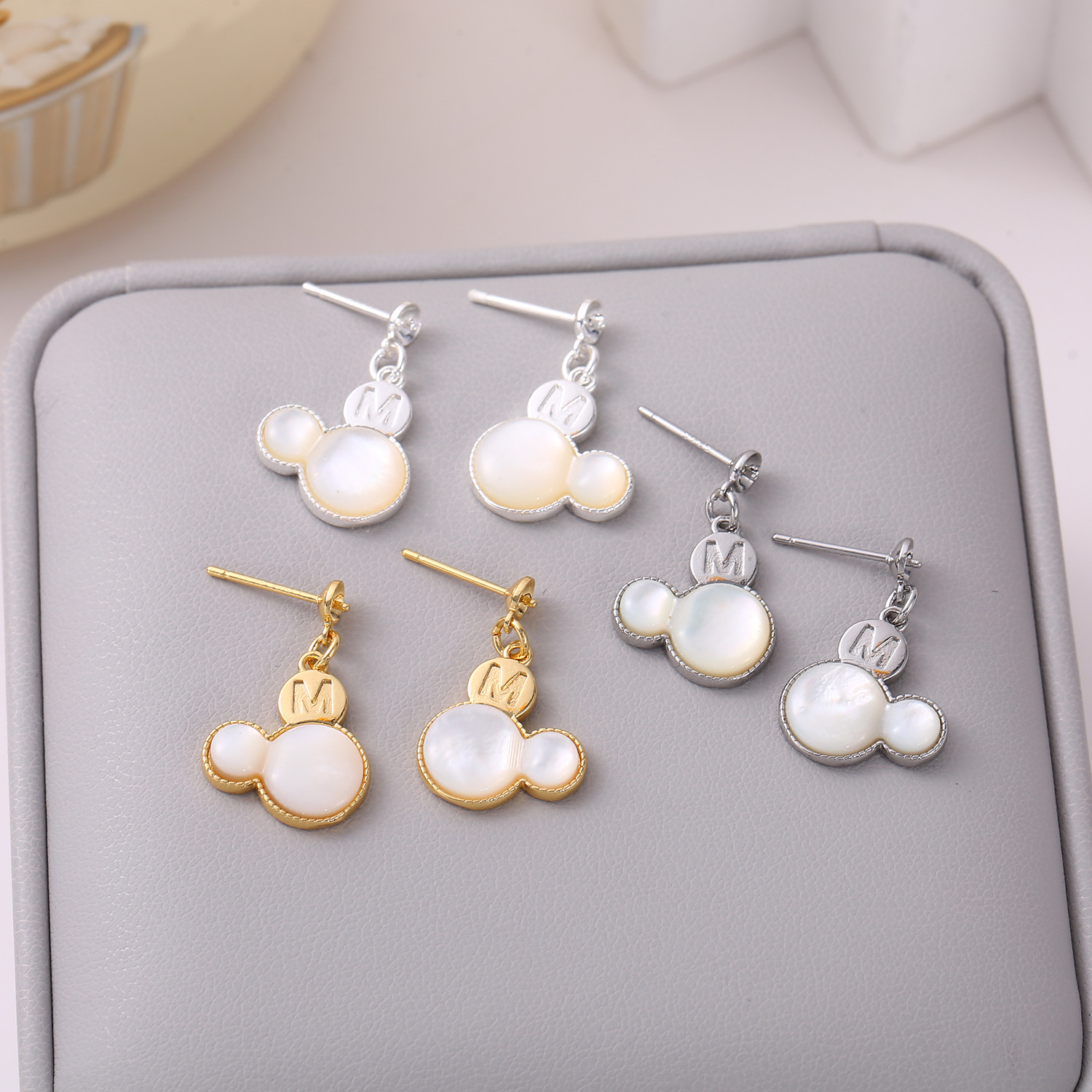 欧美跨境轻奢铜镀18k真金四叶草贝母爱心耳环小众设计感耳钉配饰