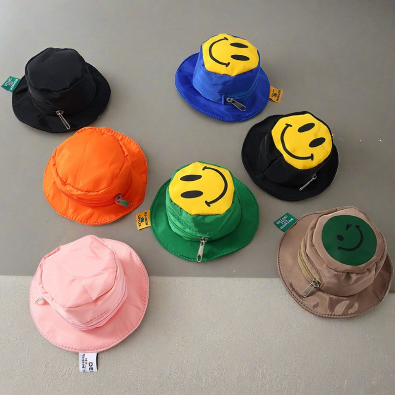 Xiaohongshuの人気のクリエイティブなスマイリーフェイスフィッシャーマンハット小銭入れヘッドフォンバッグ子供服ペンダントアクセサリーカスタマイズ可能なロゴ