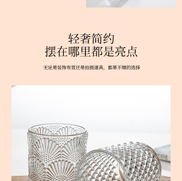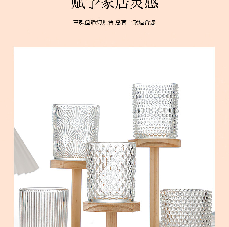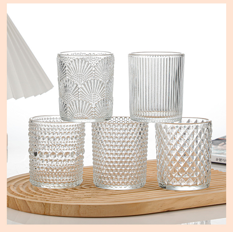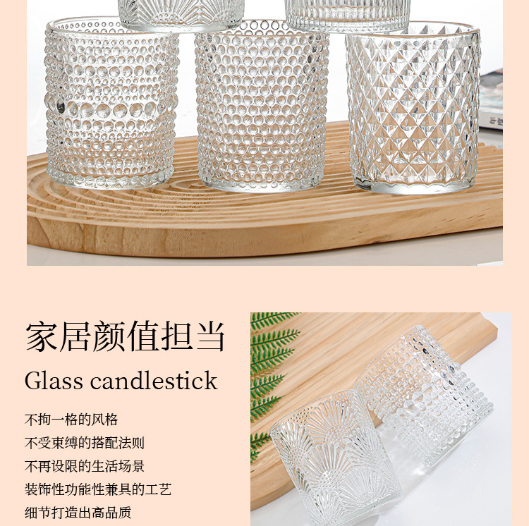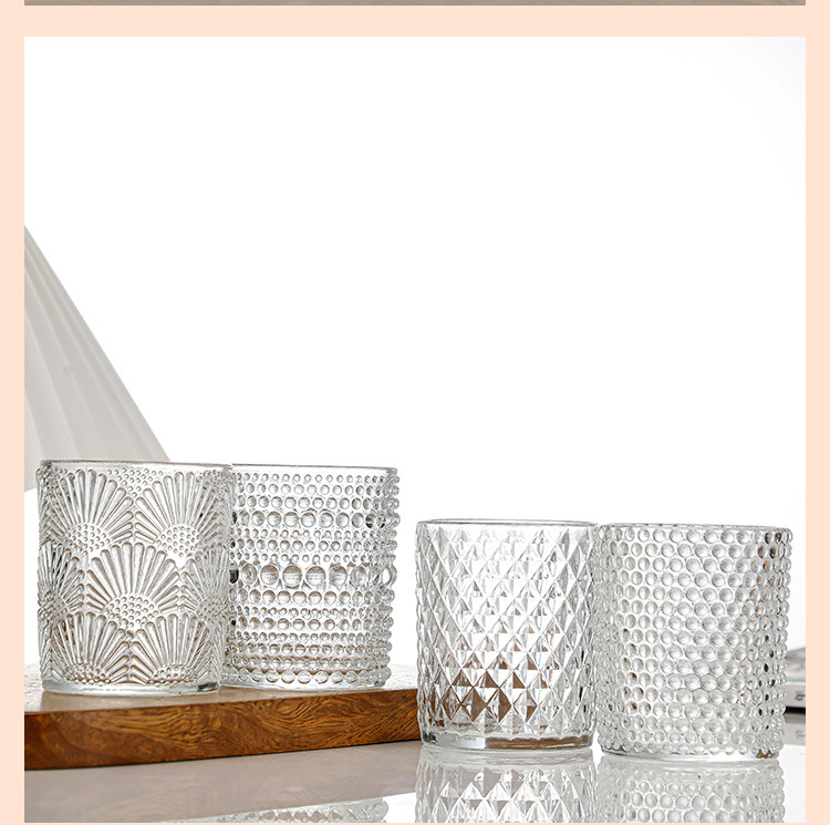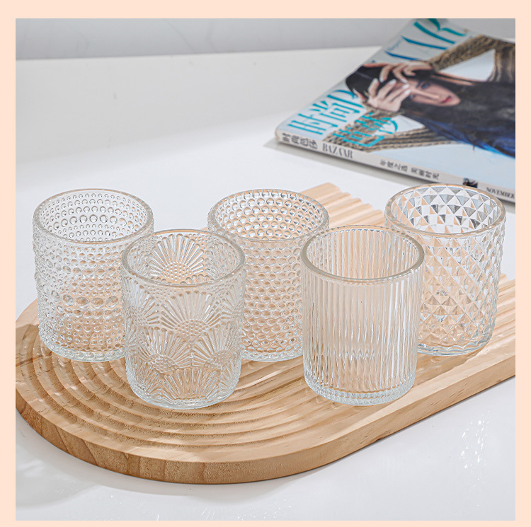 北欧風カラーガラスアロマキャンドルカップ、インスタ映え空っぽのカップ、エンボス加工キャンドルホルダー、シンプルな置物、ディフューザーボトル