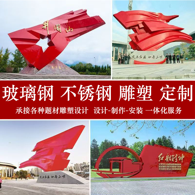 不锈钢红色文化主题雕塑户外大型玻璃钢革命景观广场摆件