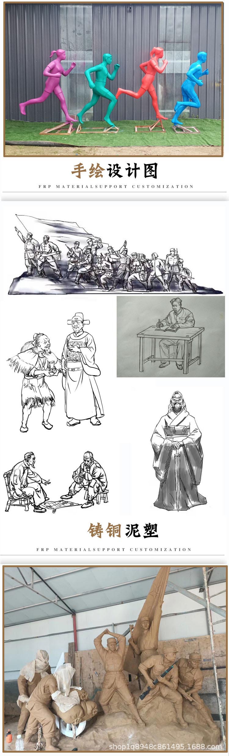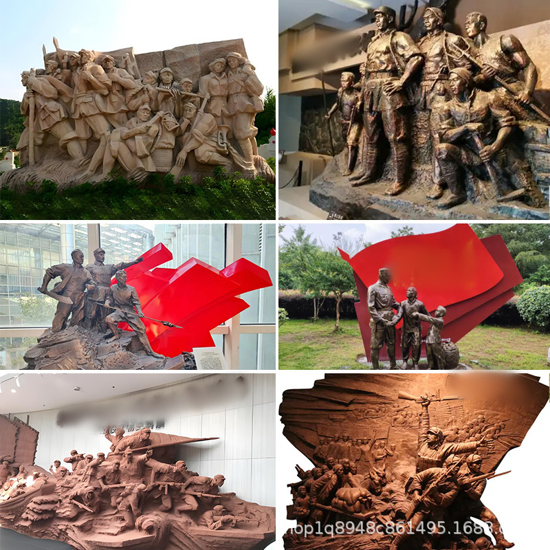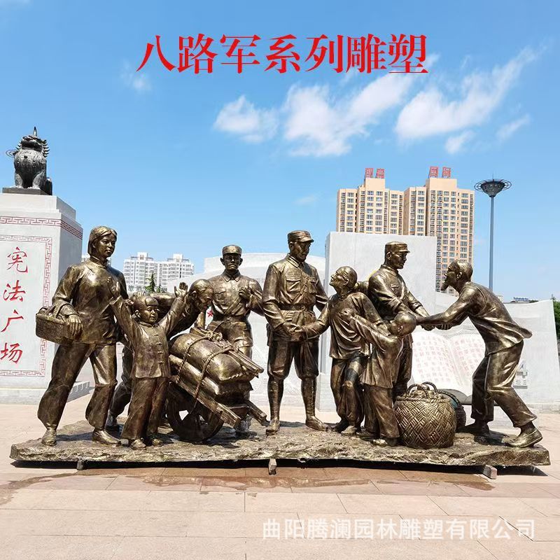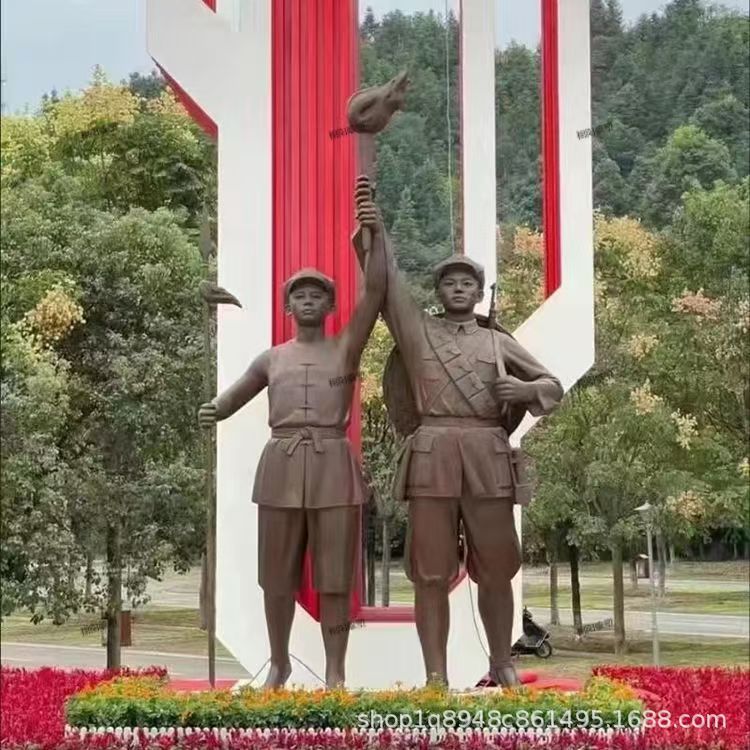 大型屋外FRP広場群像景観彫刻、FRP銅風赤軍人物群像彫刻