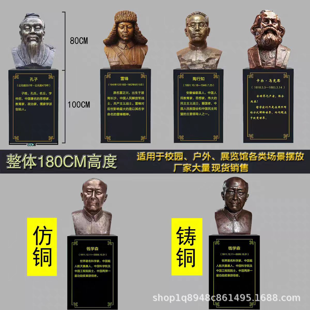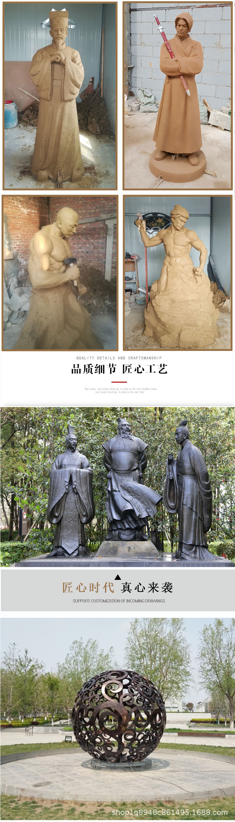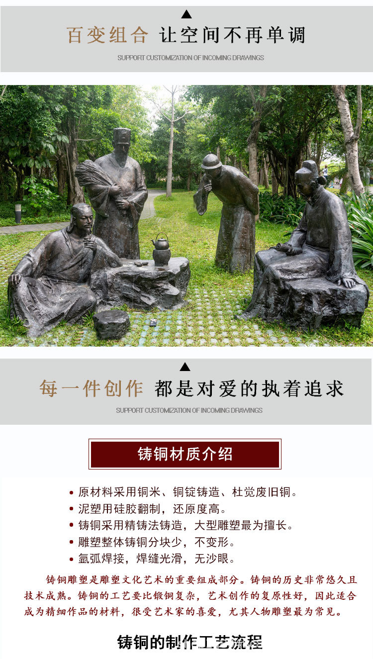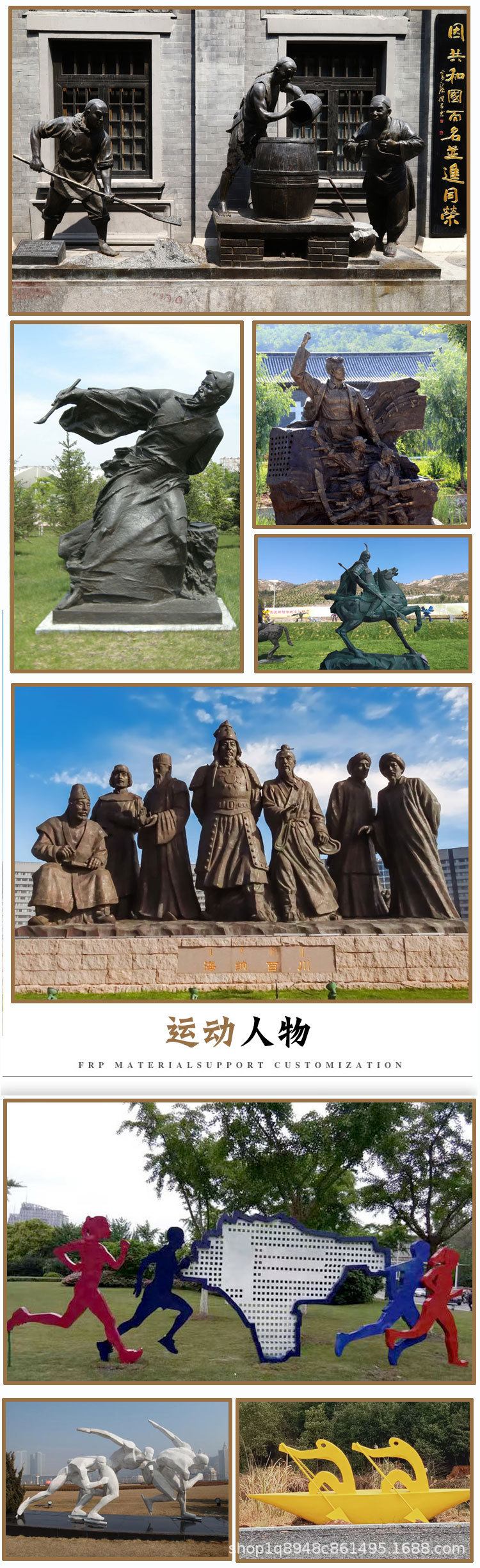 FRP製銅風人物彫刻メーカー 大型農作業シーン 歴史上の著名人 八大英雄像 置物