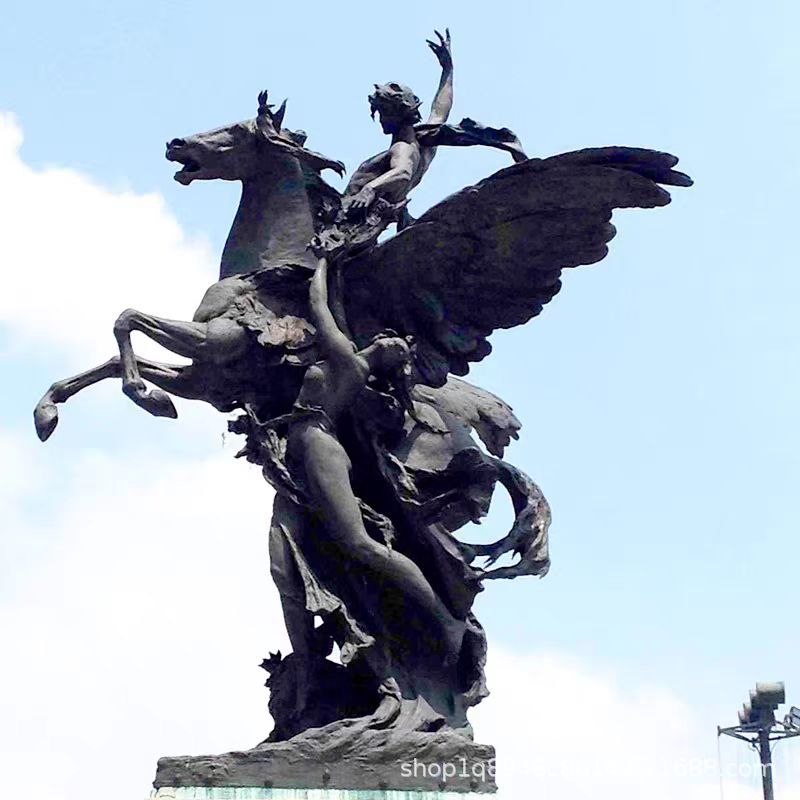 大型铜马雕塑骑马人物景观雕塑玻璃钢仿铜阿波罗战马雕像
