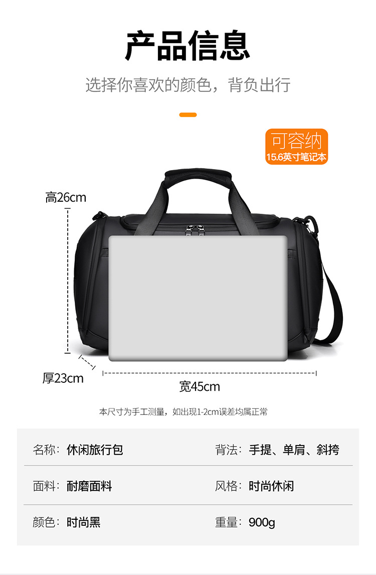 クロスボーダー男性カジュアルファッション大容量男性出张旅行干湿荷物バッグ分离フィットネス旅行バッグブーム