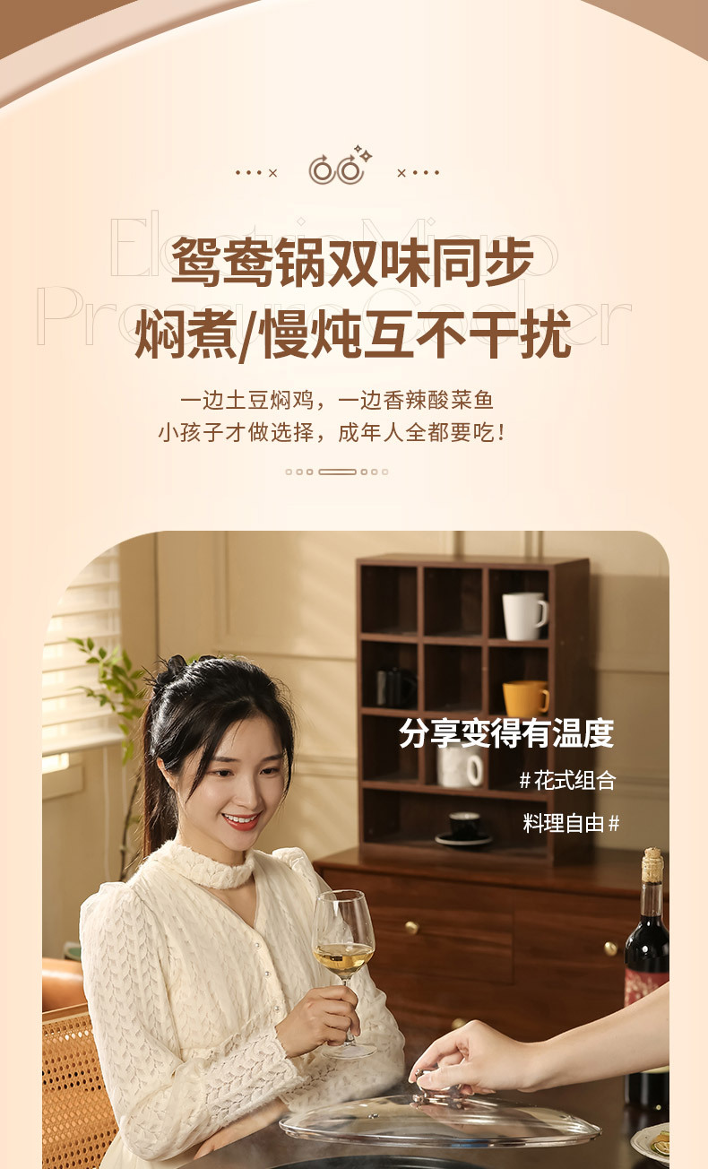 オークス家庭用鴛鴦電気鍋 デュアルコントロール 6L 多機能鍋 卸売 京東同型 M8287 大容量