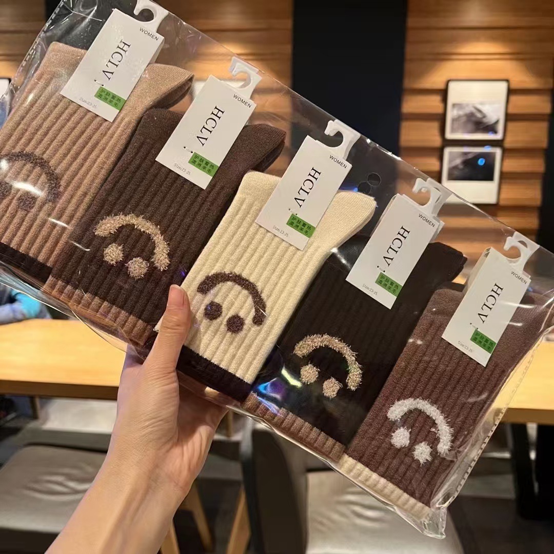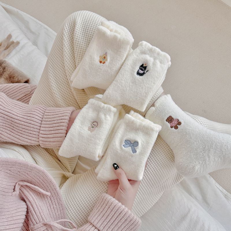 冬の厚い保温豪毛の女性の靴下の東大門の韓国版の刺繍の漫画のウサギの毛の靴下のネットの赤い中筒の靴下