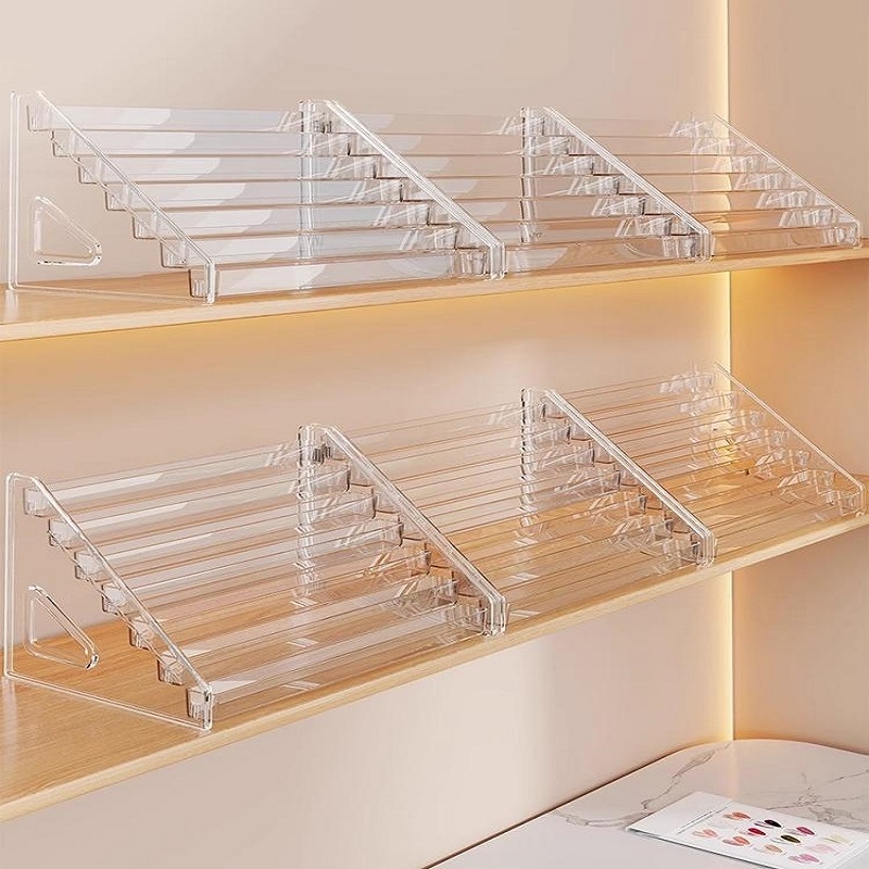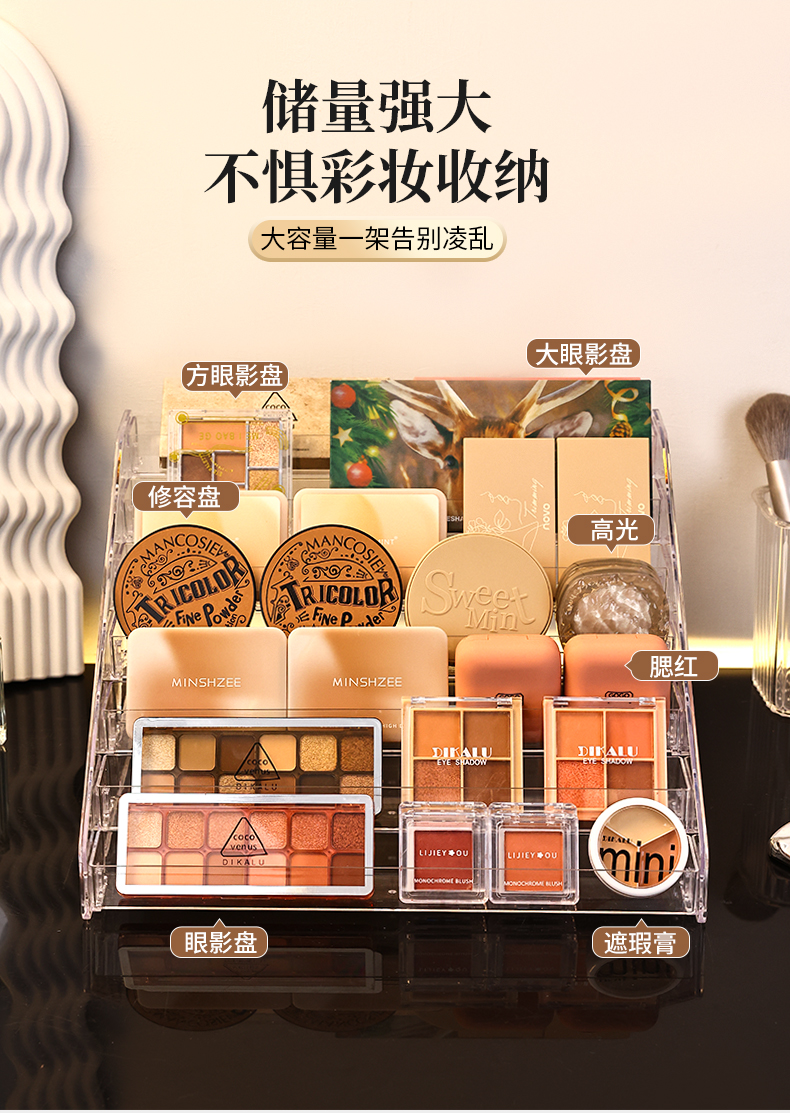 多层阶梯展示架亚克力透明指甲油化妆品收纳盒吧唧手办公仔置物架