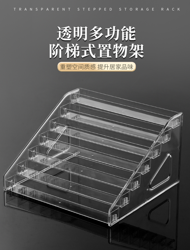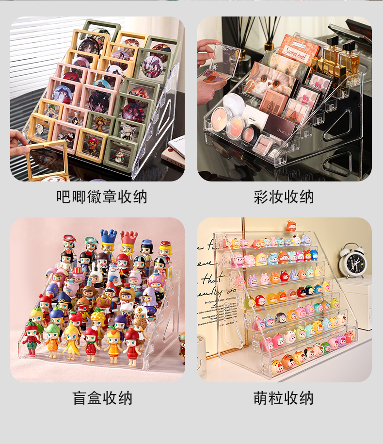 亚克力阶梯展示架盲盒收纳架吧唧收纳多层透明展示架化妆品置物架