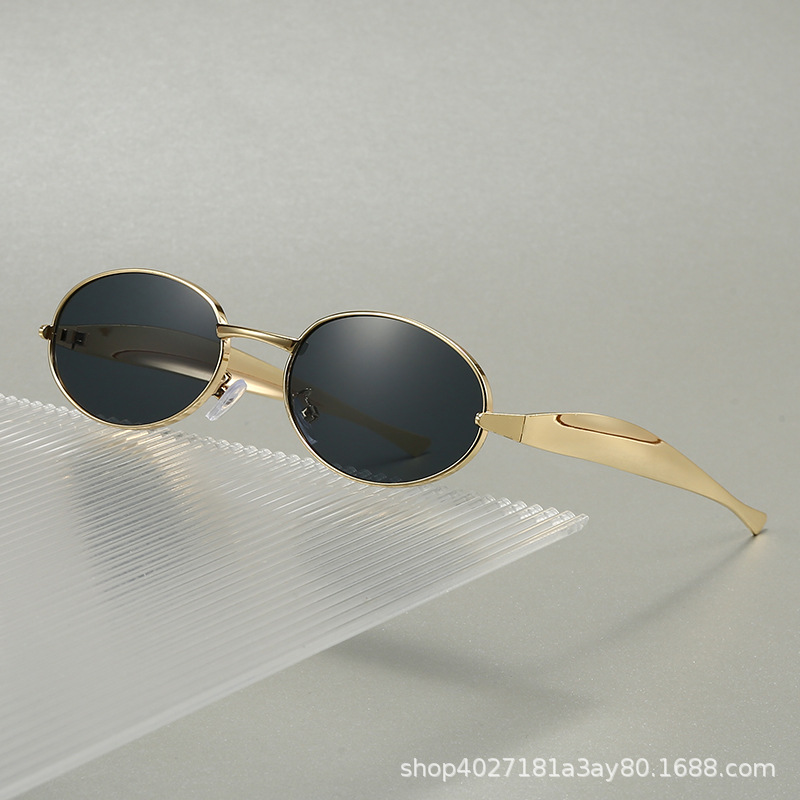 2025新款椭圆小框太阳镜太阳眼镜欧美个性时尚金属墨镜高级感走秀