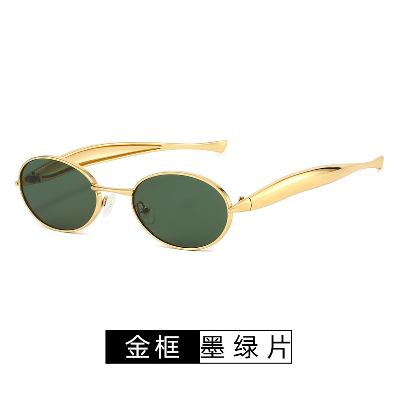 欧美沙丁鱼镜腿金属太阳镜小框椭圆形高级感时尚走秀防紫外线墨镜