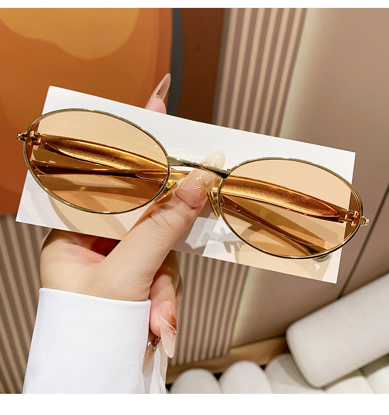 2025椭圆小框太阳镜2025新款太阳眼镜欧美个性时尚金属墨镜高级感