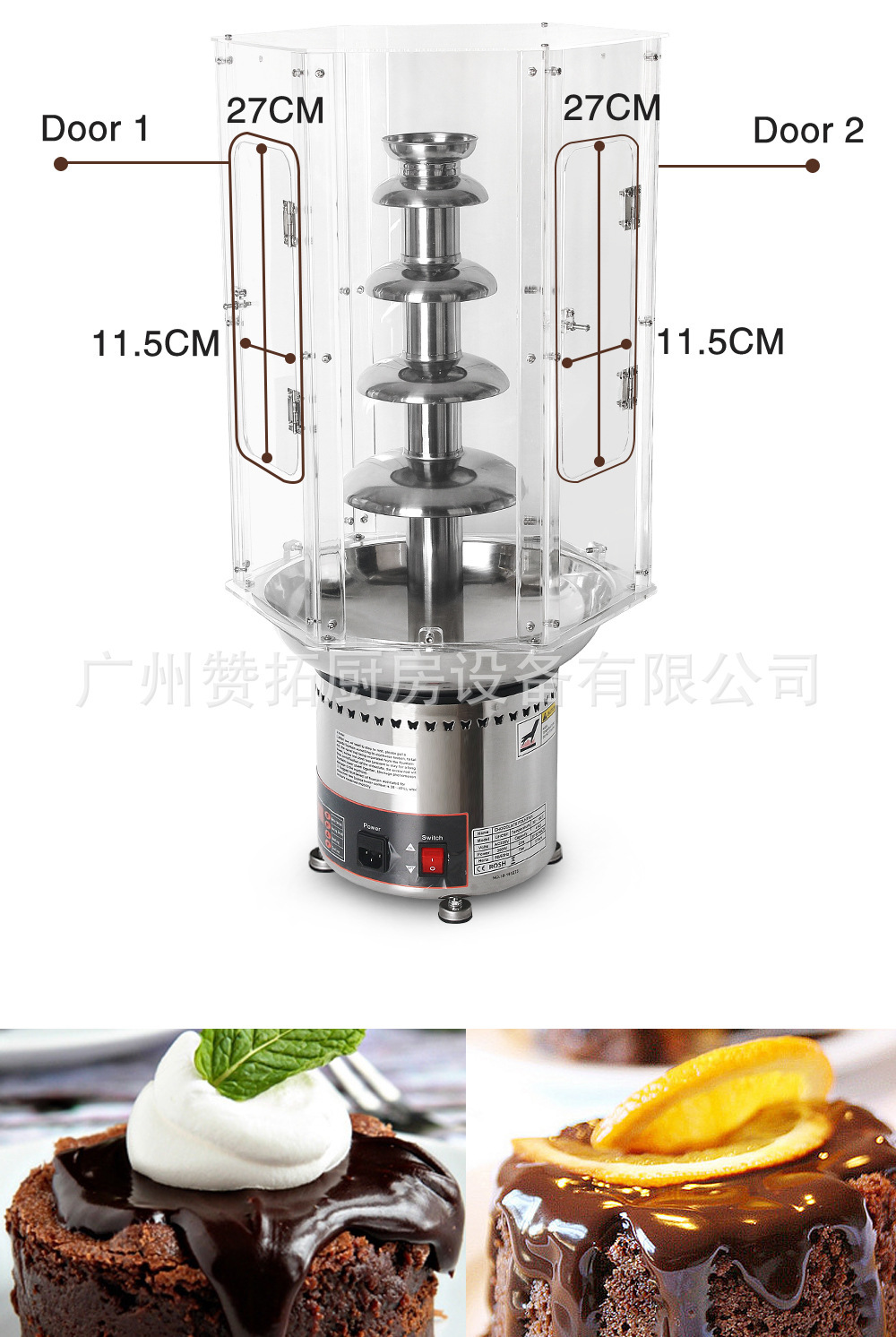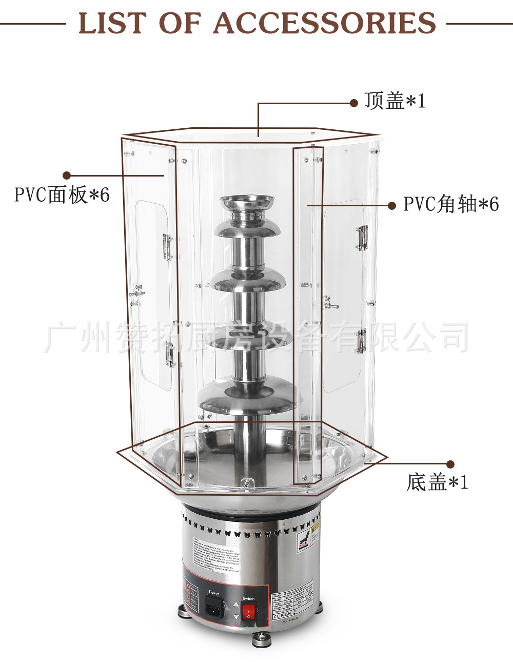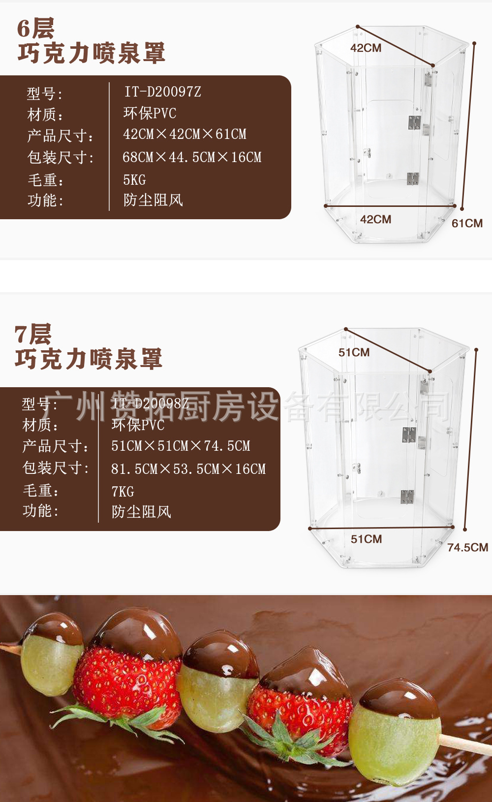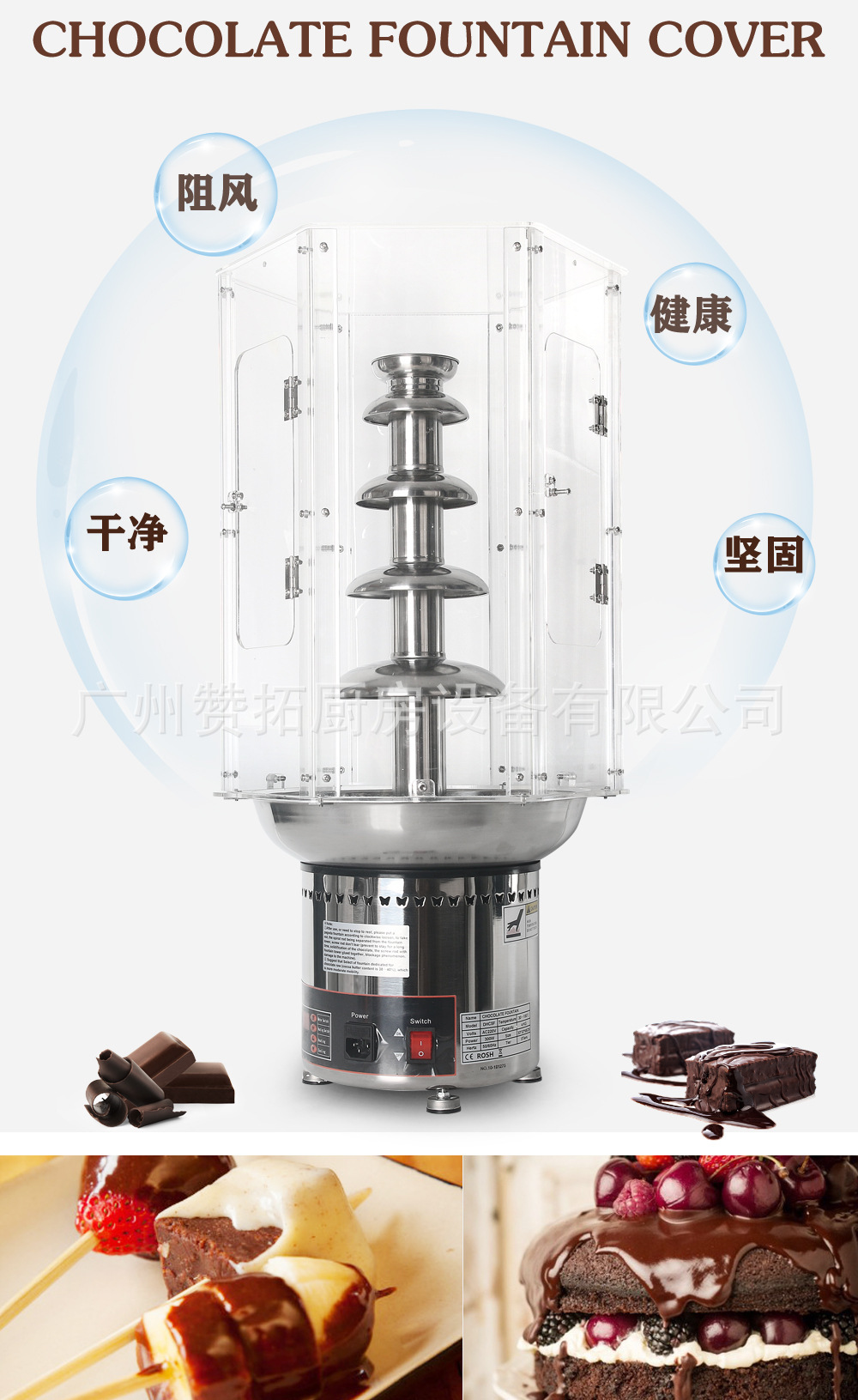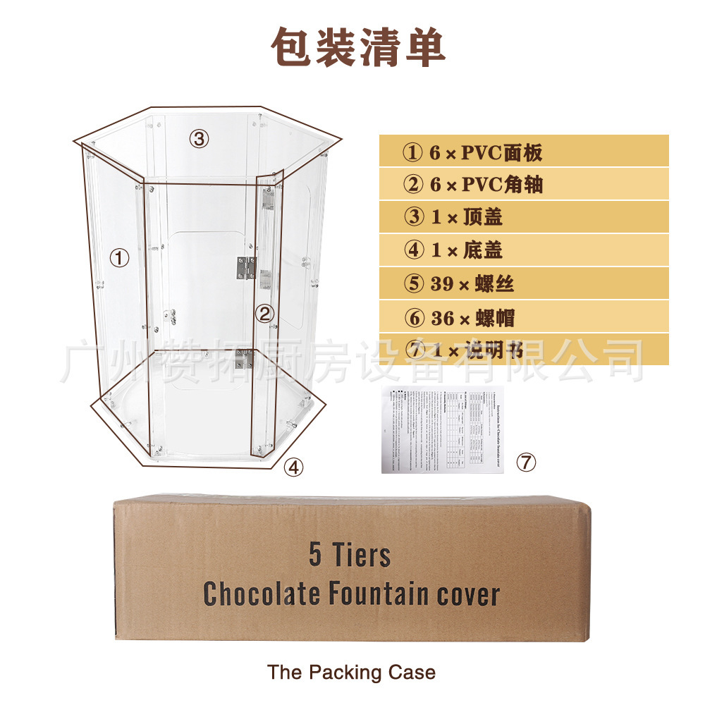 厂家直销4层5层6层7层巧克力喷泉机罩巧克力配套PVC隔离外罩