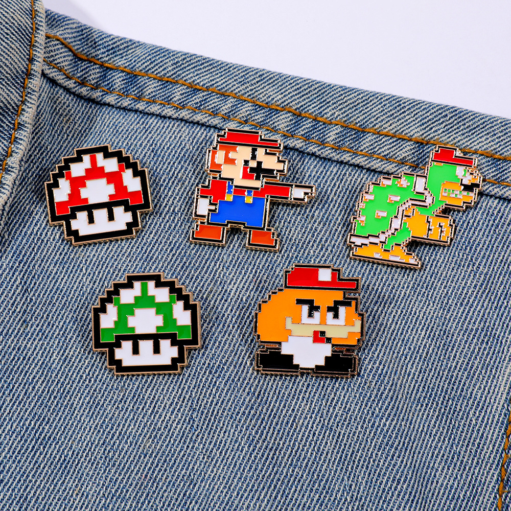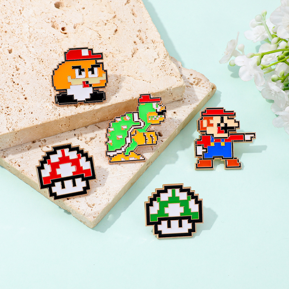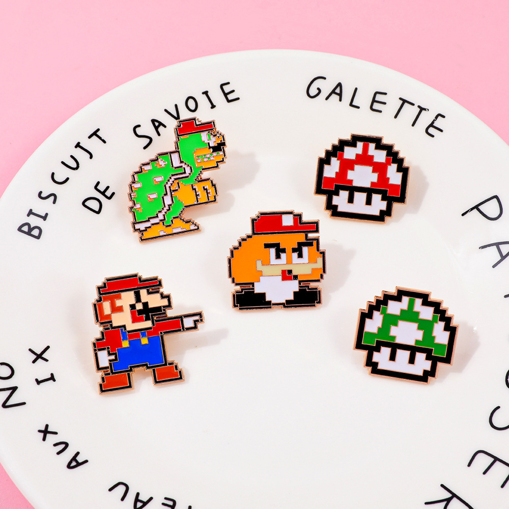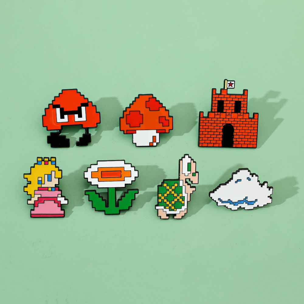 かわいい漫画クリエイティブ個性的なピクセル風マリオブローチスーパーマリーキノコ王女家金属バッジ
