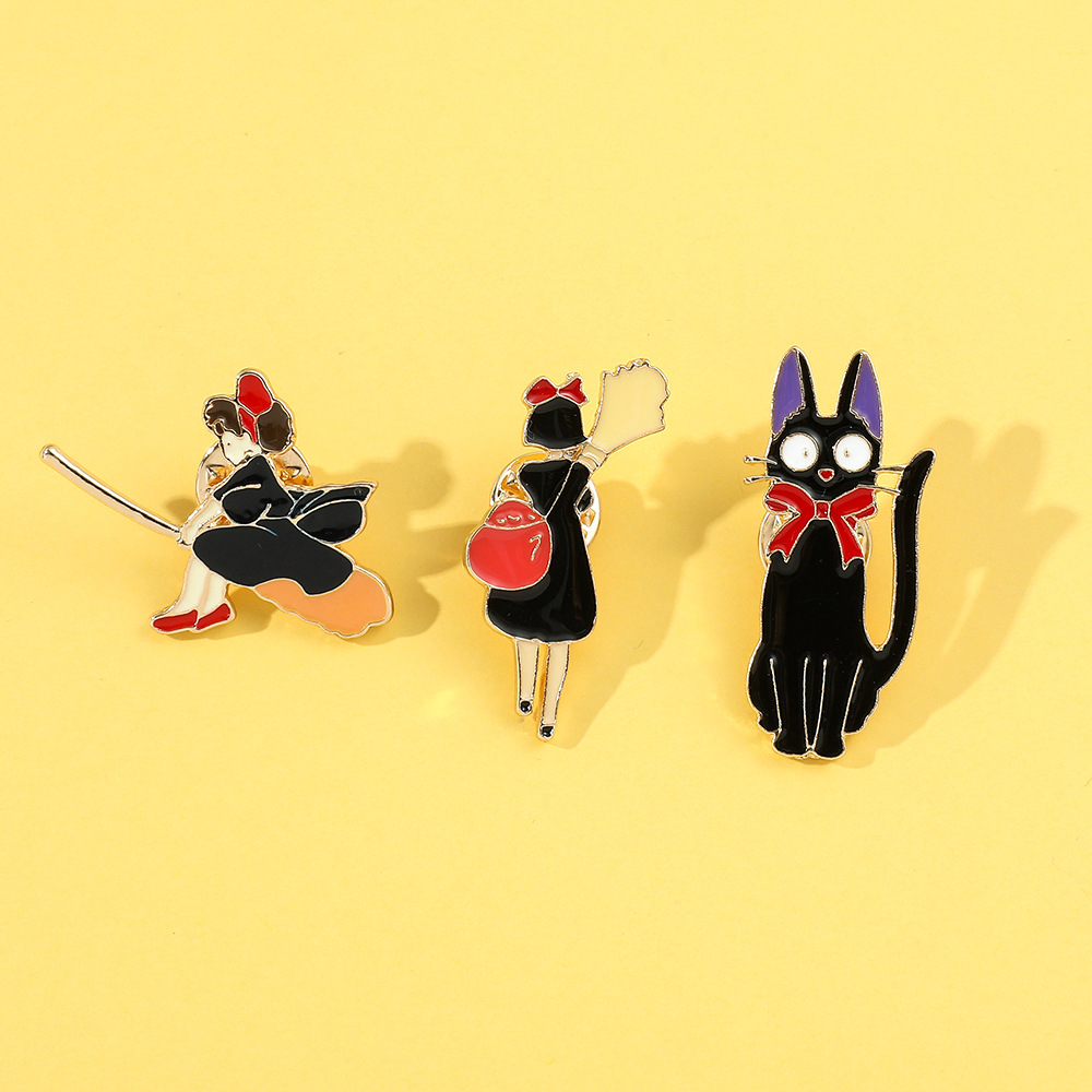 かわいい漫画クリエイティブ个性魔女の宅急便金属バッジ小さな黒猫合金ドリップオイルブローチアクセサリーピン