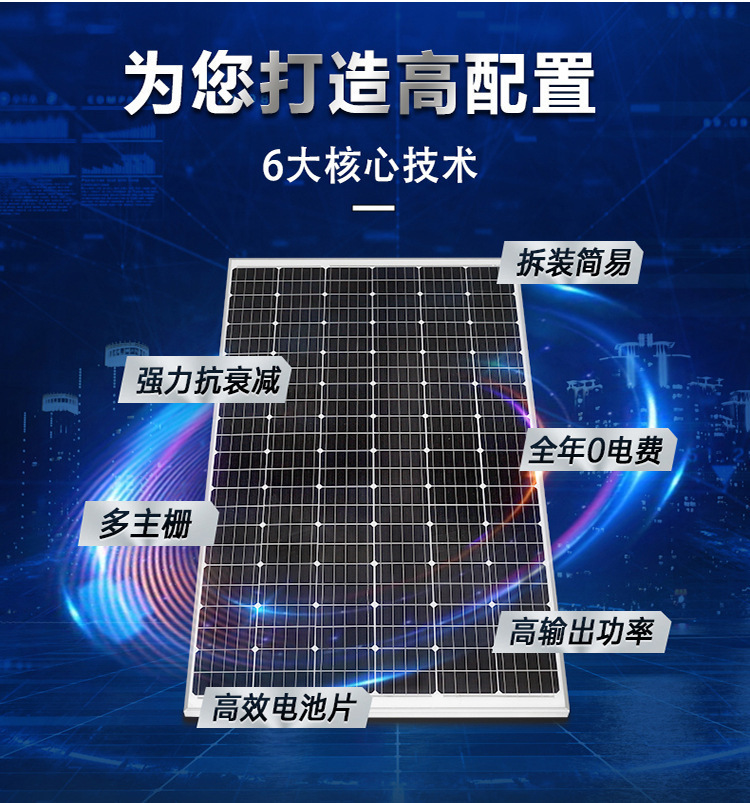 单晶300W太阳能板太阳能电池板发电板光伏发电系统12V24V家用充电