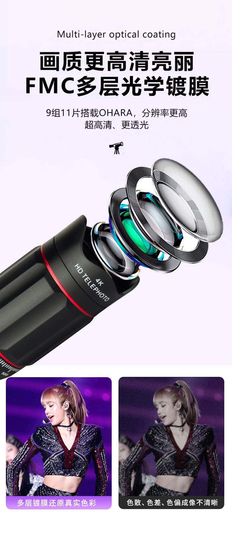 抖音直播22倍手机长焦镜头演唱会4K高清手机拍照单筒望远镜通用型