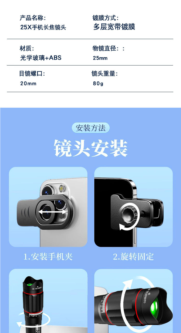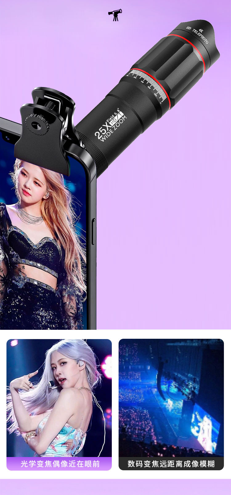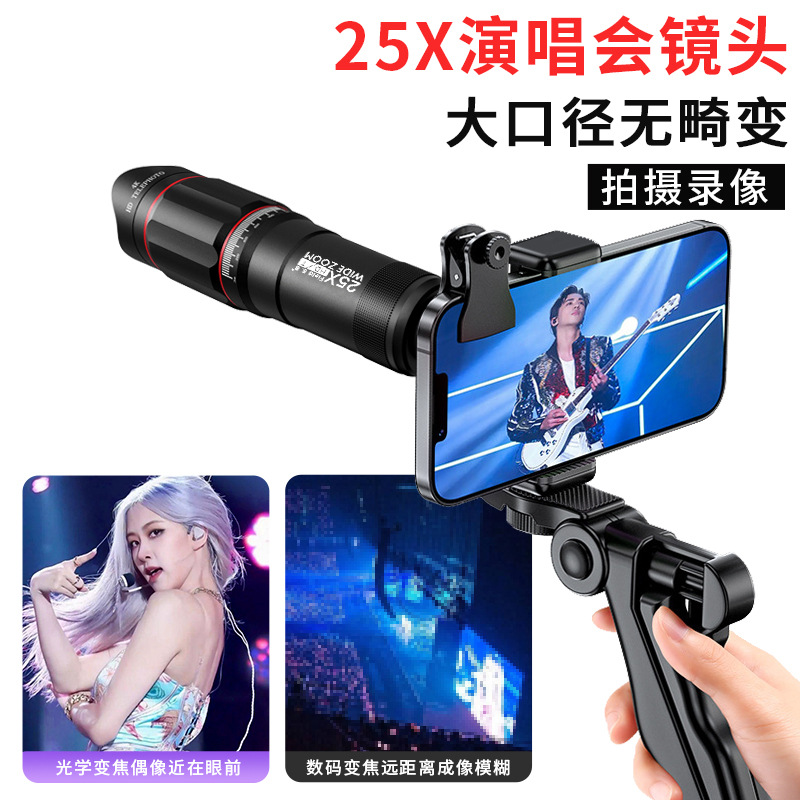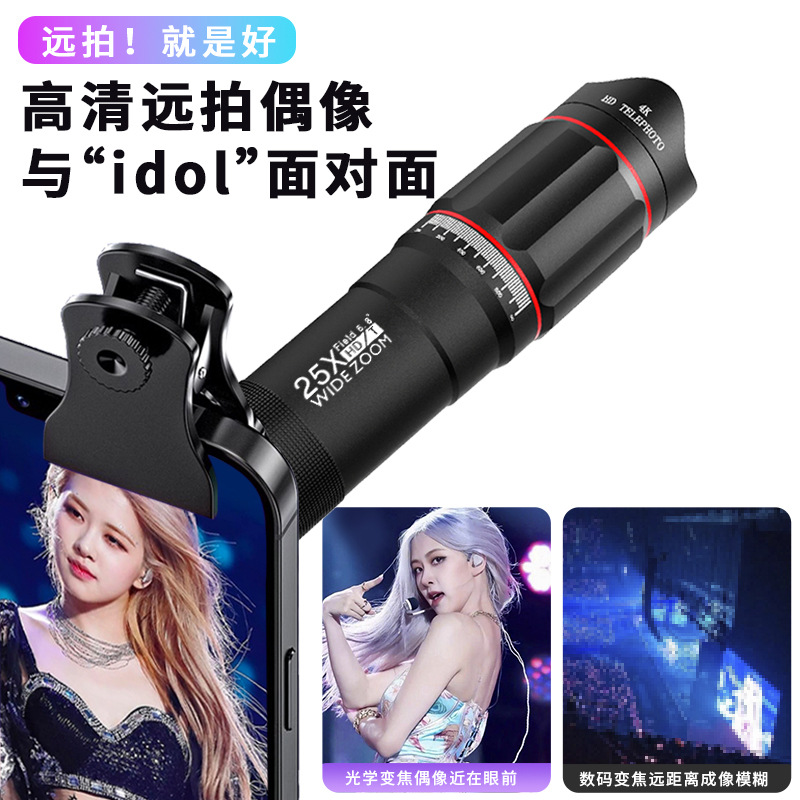 跨境批发25倍单筒望远镜镜头全屏无畸变手机外挂拍照摄影长焦镜头