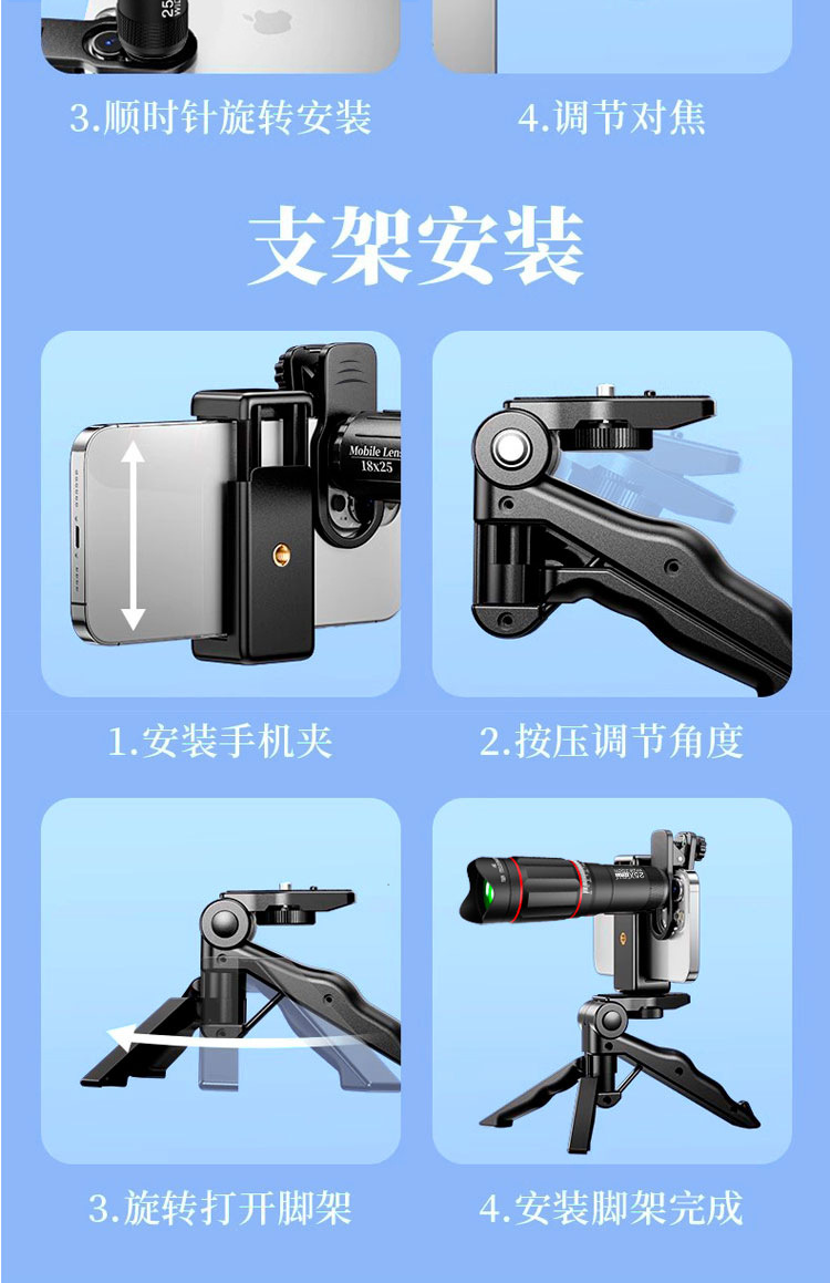 跨境32倍手机长焦镜头全金属高清高倍演唱会拍照户外单筒望远镜