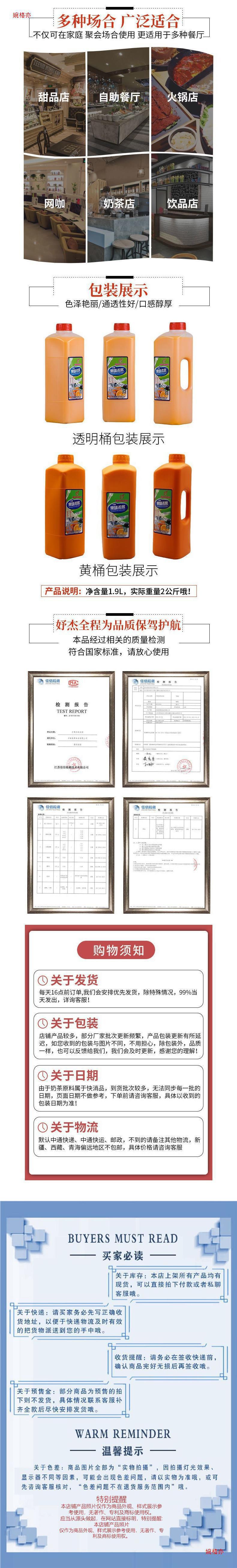 浓缩果汁果浆糖浆1.9L商用橙汁金桔柠檬汁饮料原浆芒果奶茶店橙味