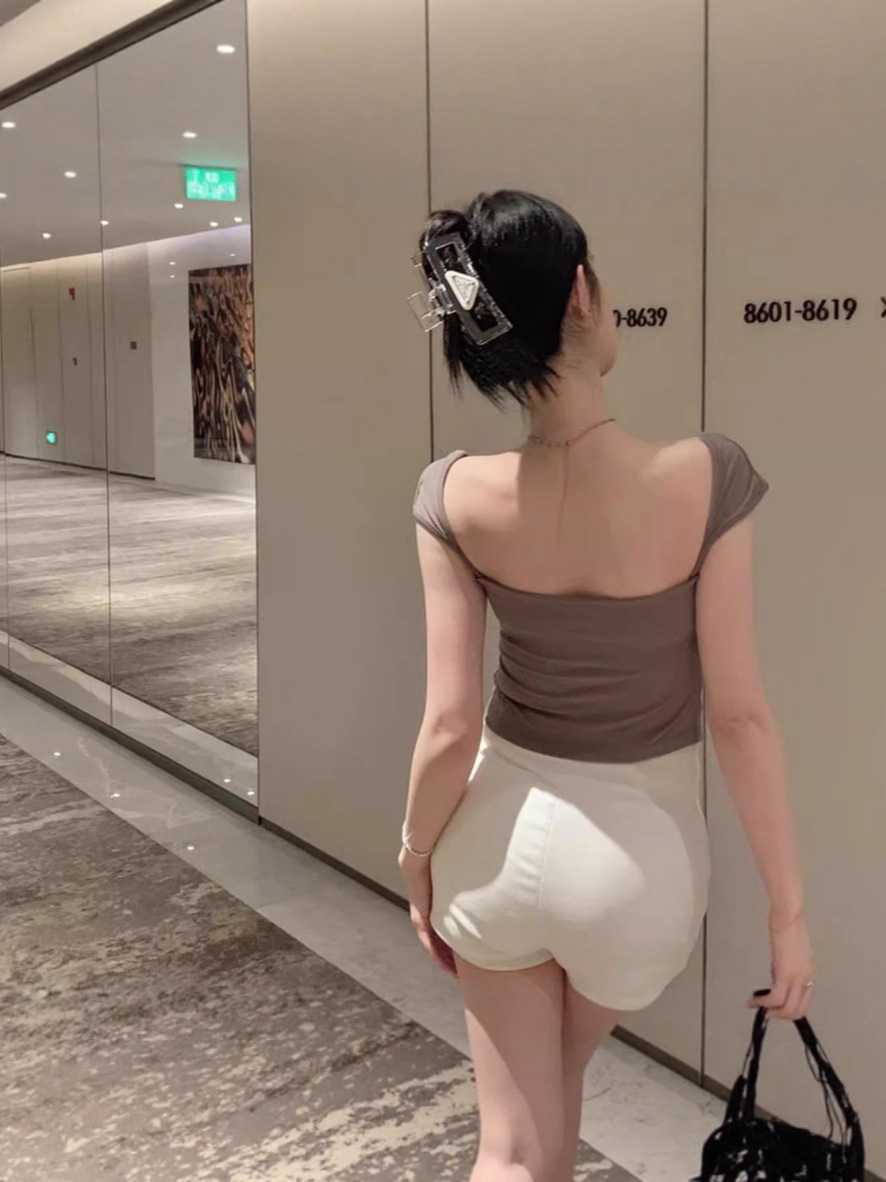 ギャルの純欲風の一字の襟は首を切って肩の短いtシャツの女性のデザイン感を掛けます。