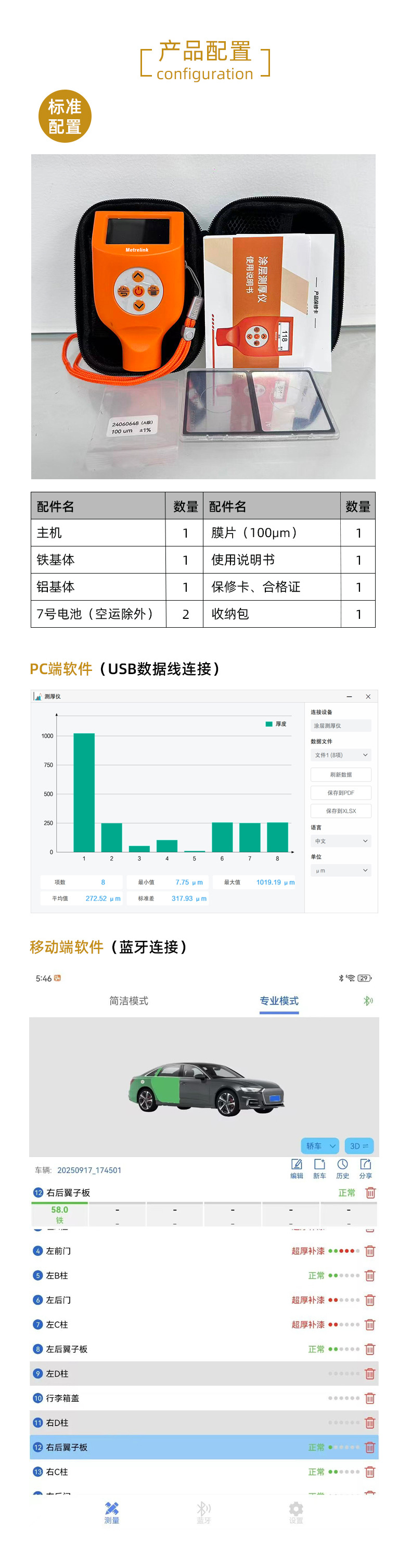 塗膜厚さ計兼用自動塗膜厚さ計中古車塗装面厚さ計OCT100高精度塗膜測定