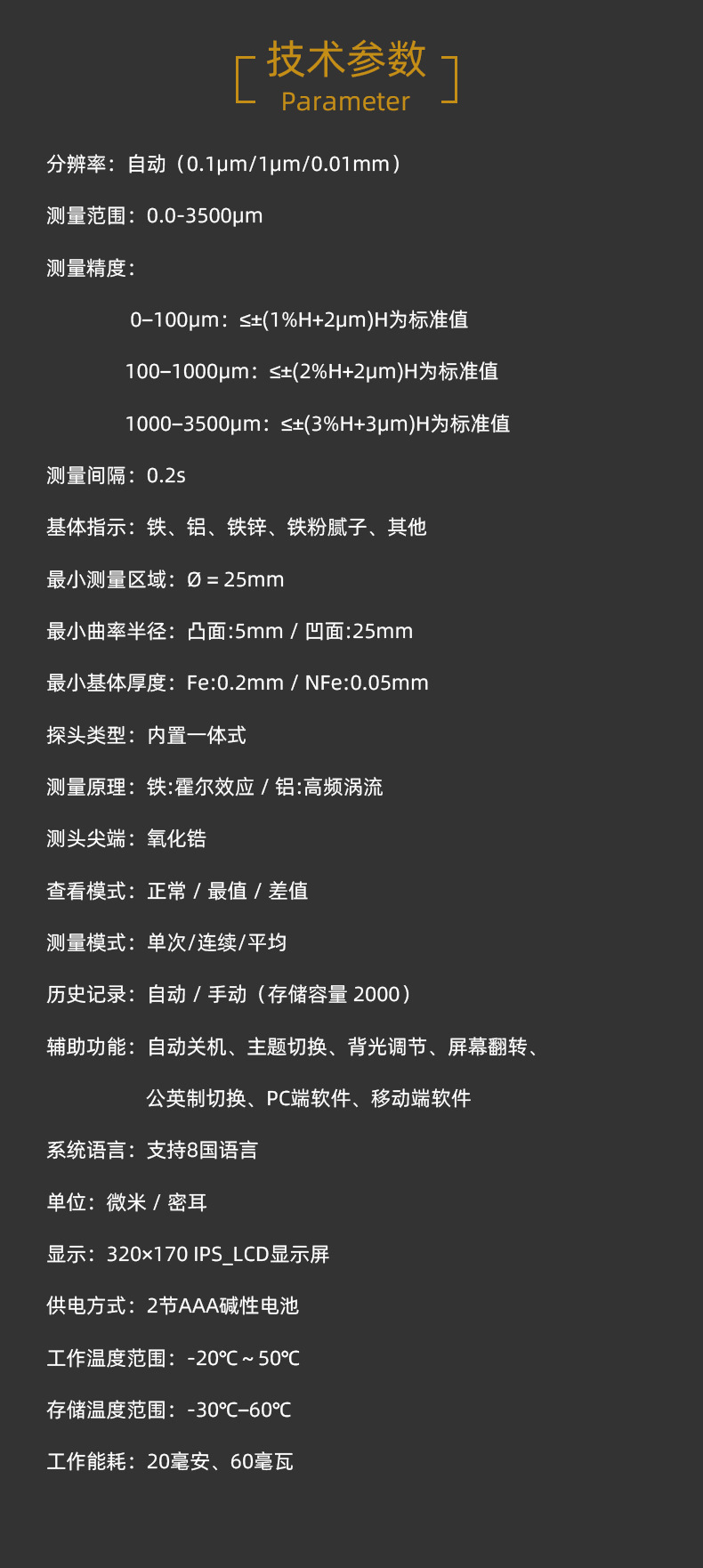 涂层测厚仪铁铝两用漆膜电镀镀锌测厚仪汽车油漆膜厚度检测仪