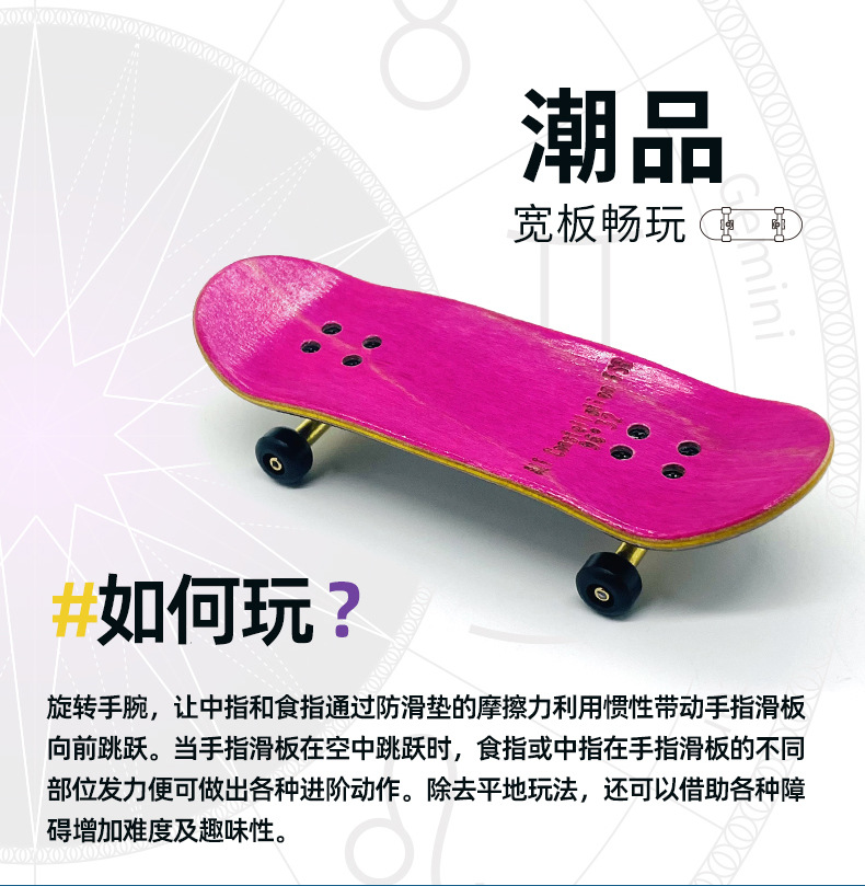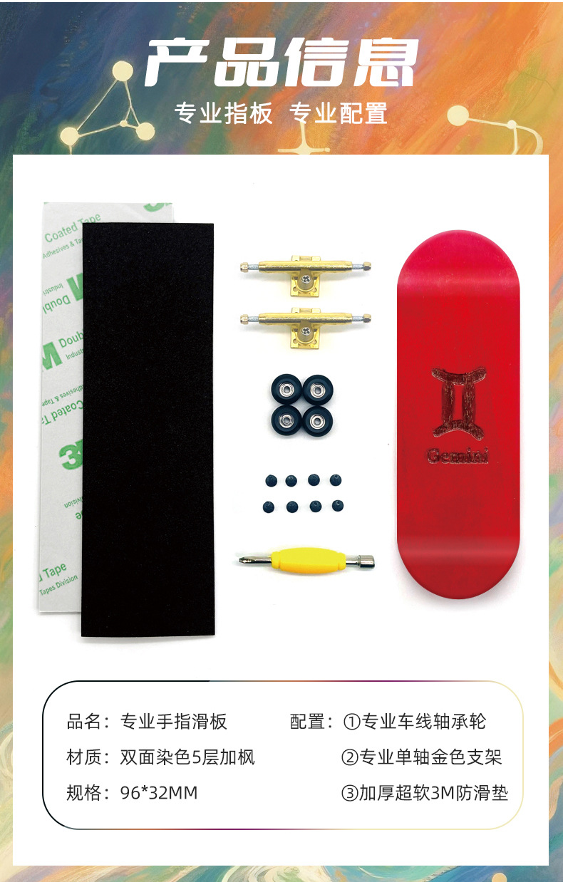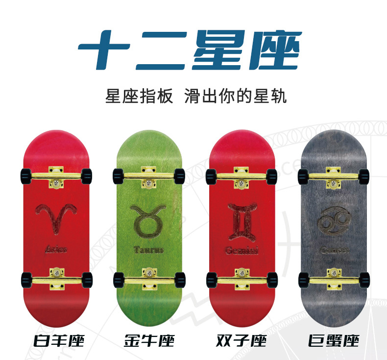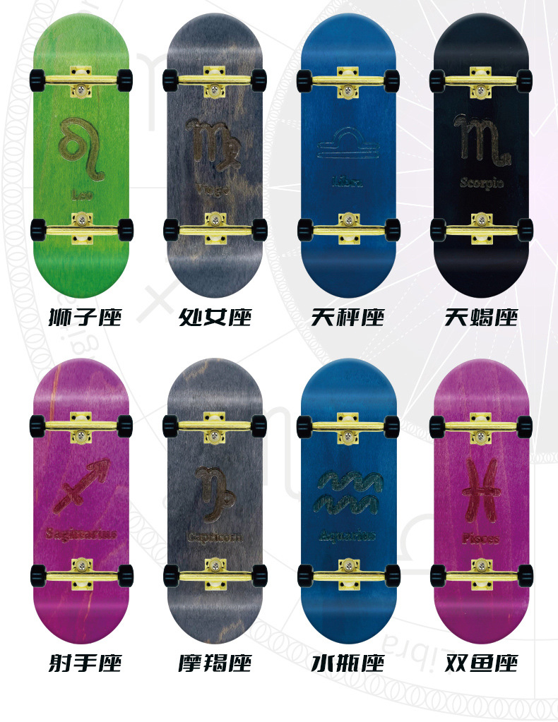 十二星座手指滑板32mm专业指尖滑板单轴支架加枫宽桥染色指板