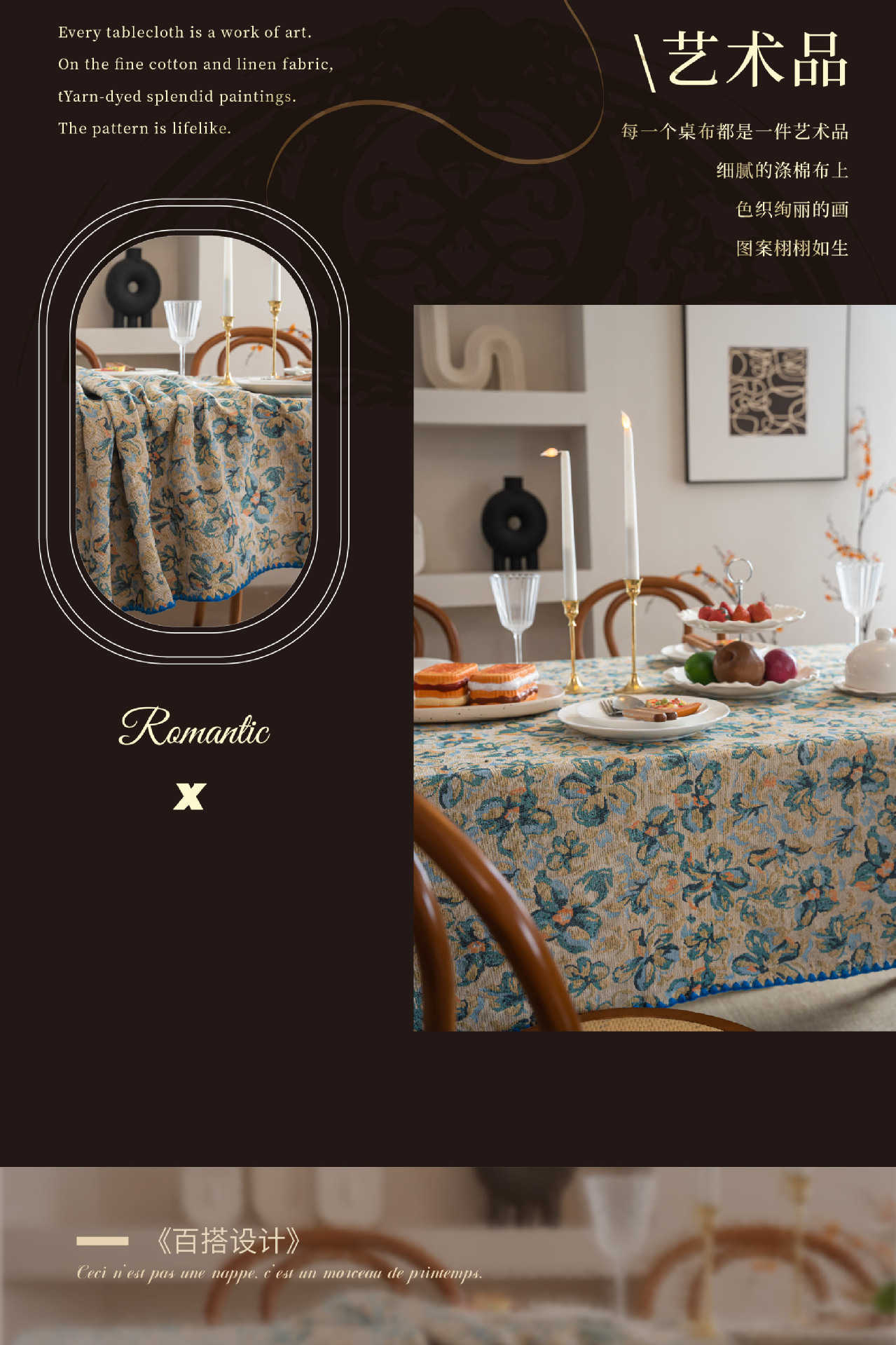 伊缦琪韵桌布法式复古雪尼尔植物餐桌布提花盖布台布氛围工厂直供