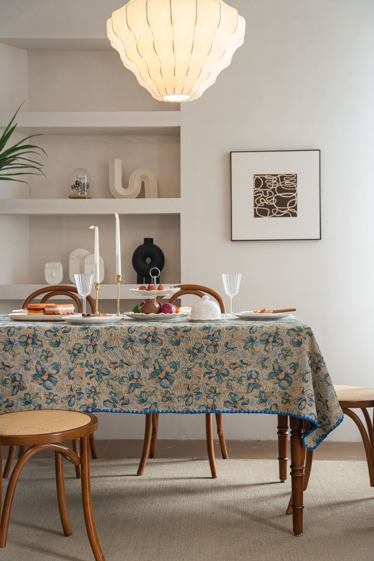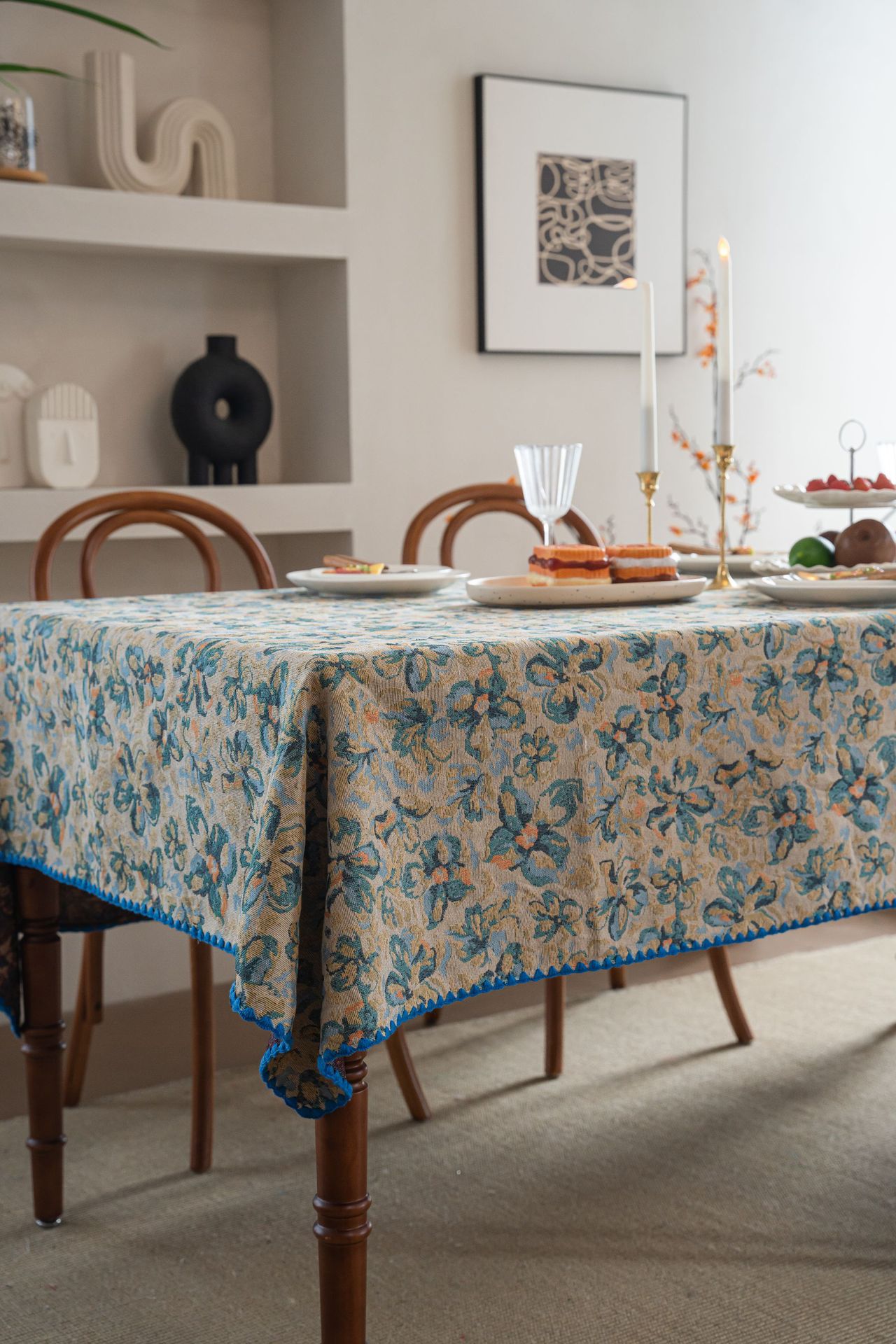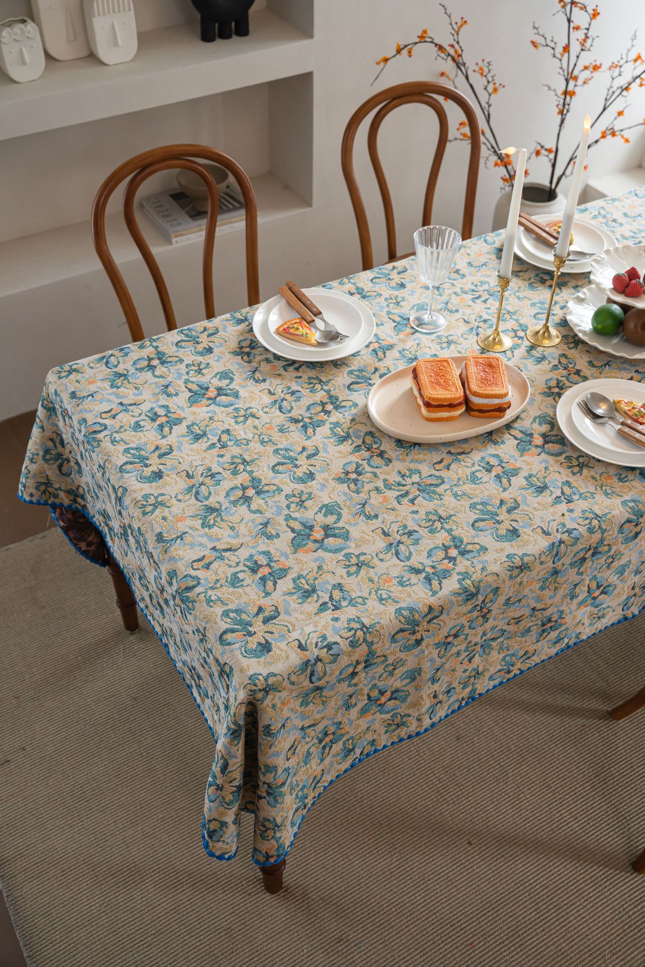 伊缦琪韵提花桌布蓝色蝴蝶兰撞色绣花餐桌布百搭长方形工厂直供
