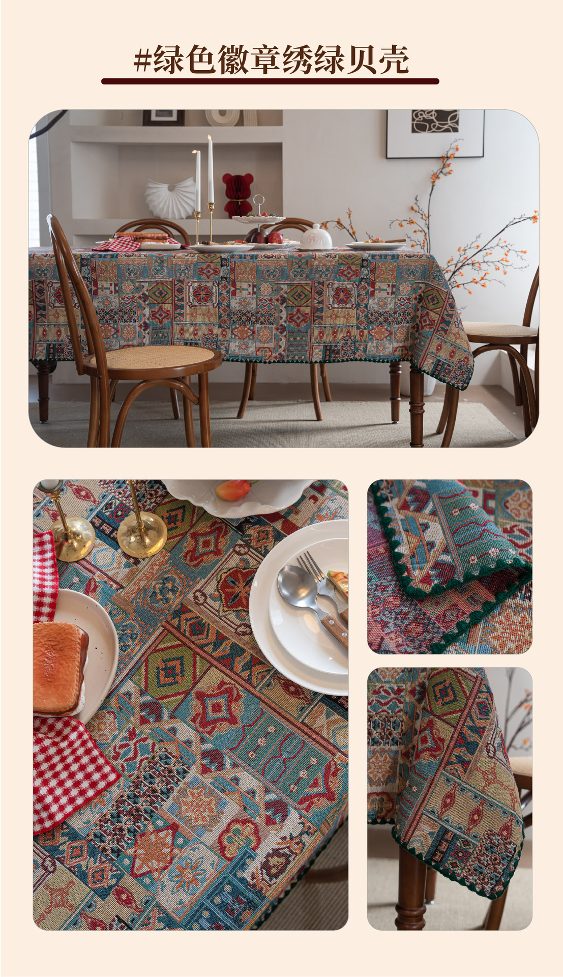 伊缦琪韵提花桌布波西米亚撞色绣花餐桌布百搭长方形工厂直供