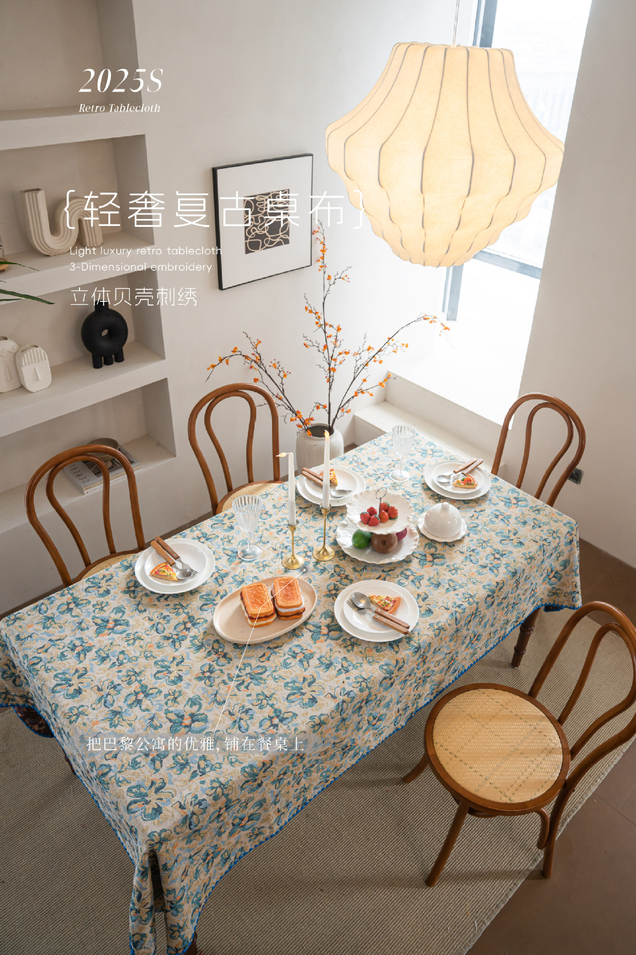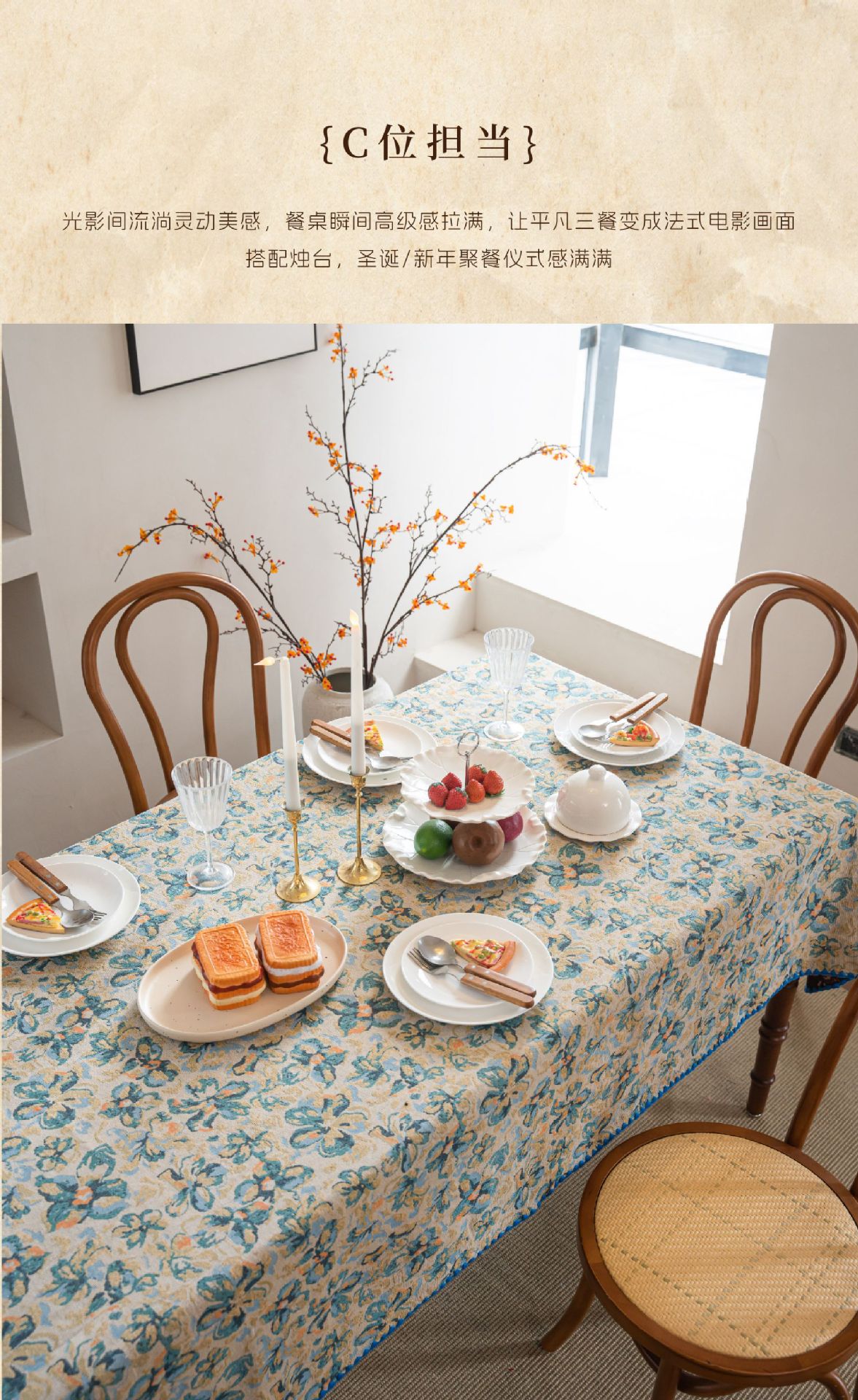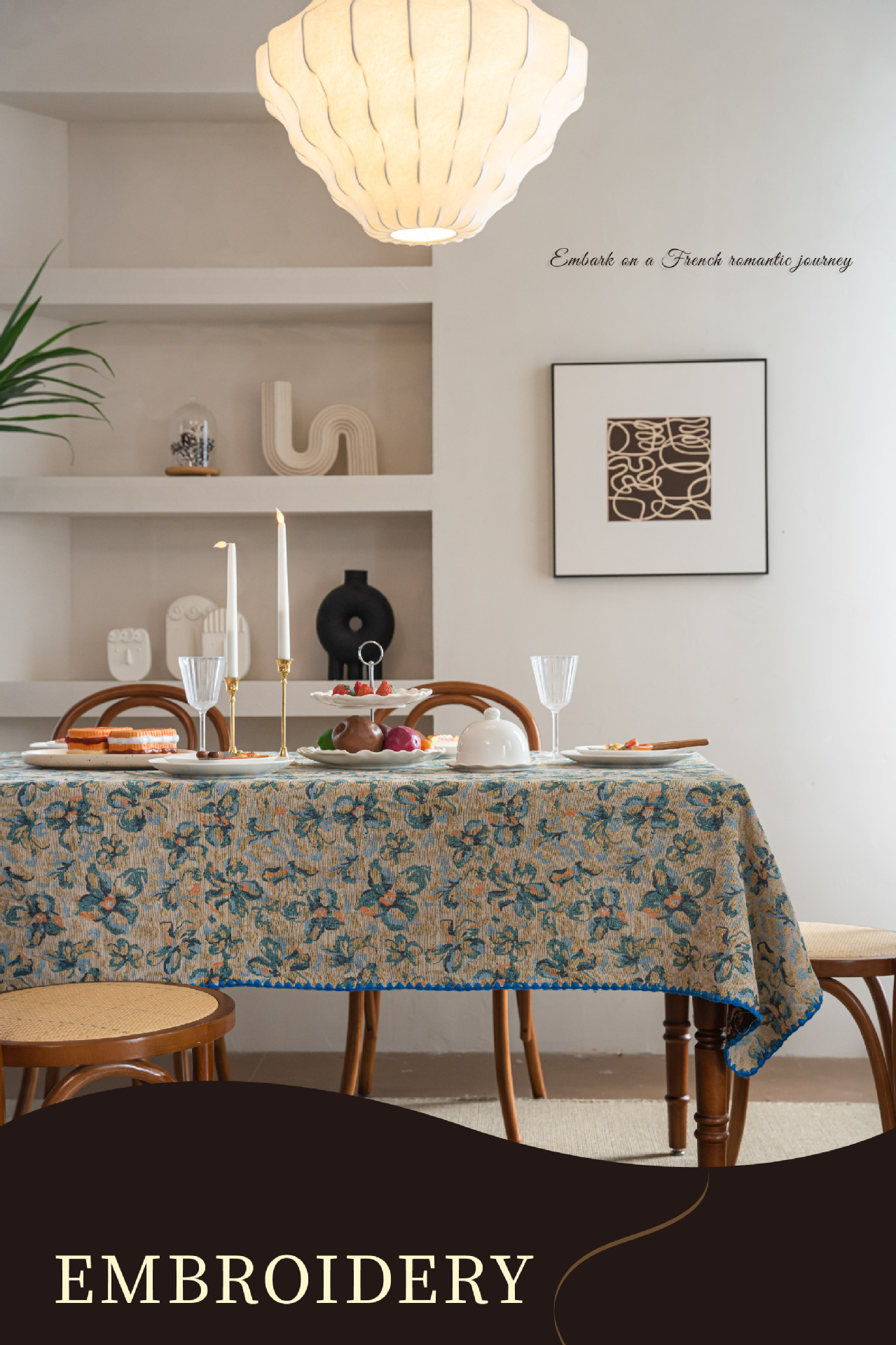 伊琪韻テーブルクロスフランスレトロ刺繍衝突色テーブルクロスジャカード長方形テーブルクロス雰囲気感工場