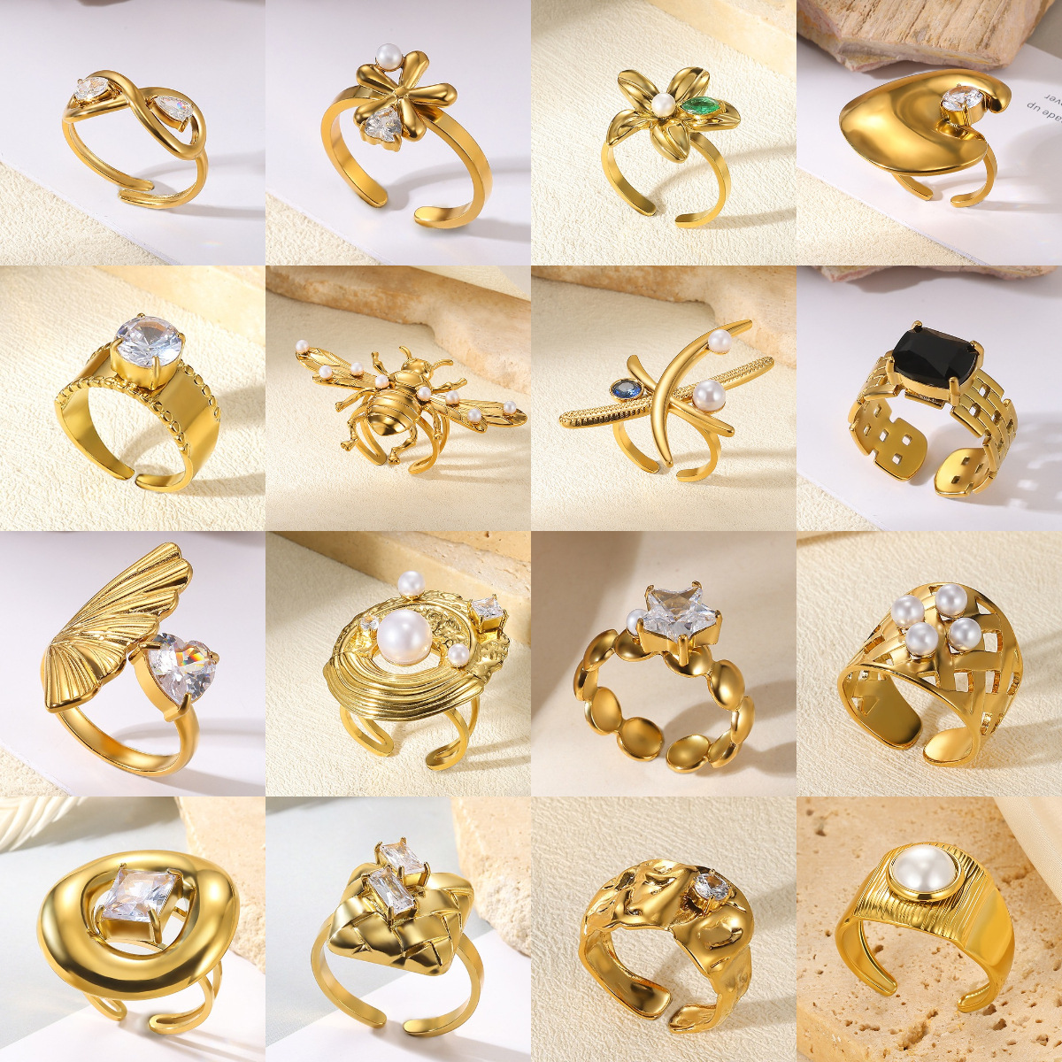 不锈钢珍珠锆石开口戒镂空几何轻奢高级感光面五角星珠宝首饰ring