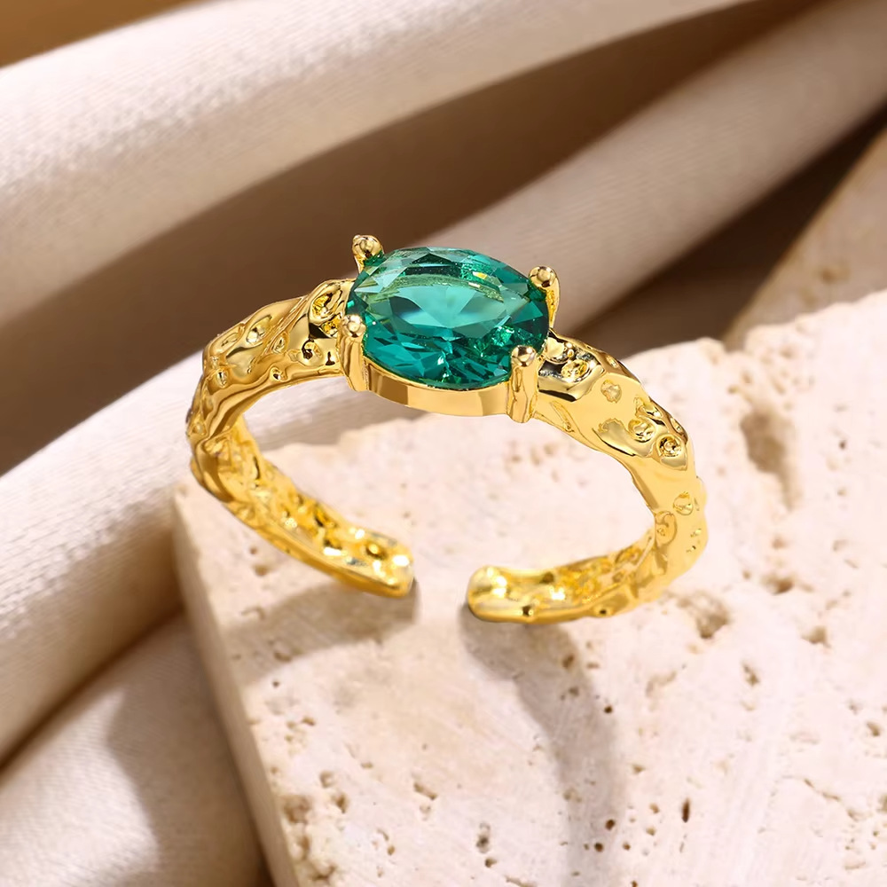 クロスボーダー軽豪華復古風グリーンジルコン開口指輪18k金メッキ祖母緑高級感指輪アクセサリー