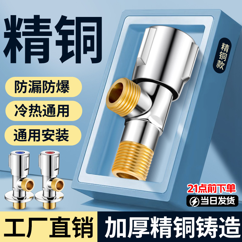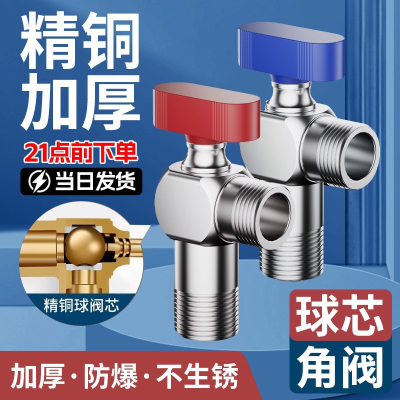 大流量三角弁精銅冷水温水器ガス4分6分球弁球芯止水大通量スイッチ