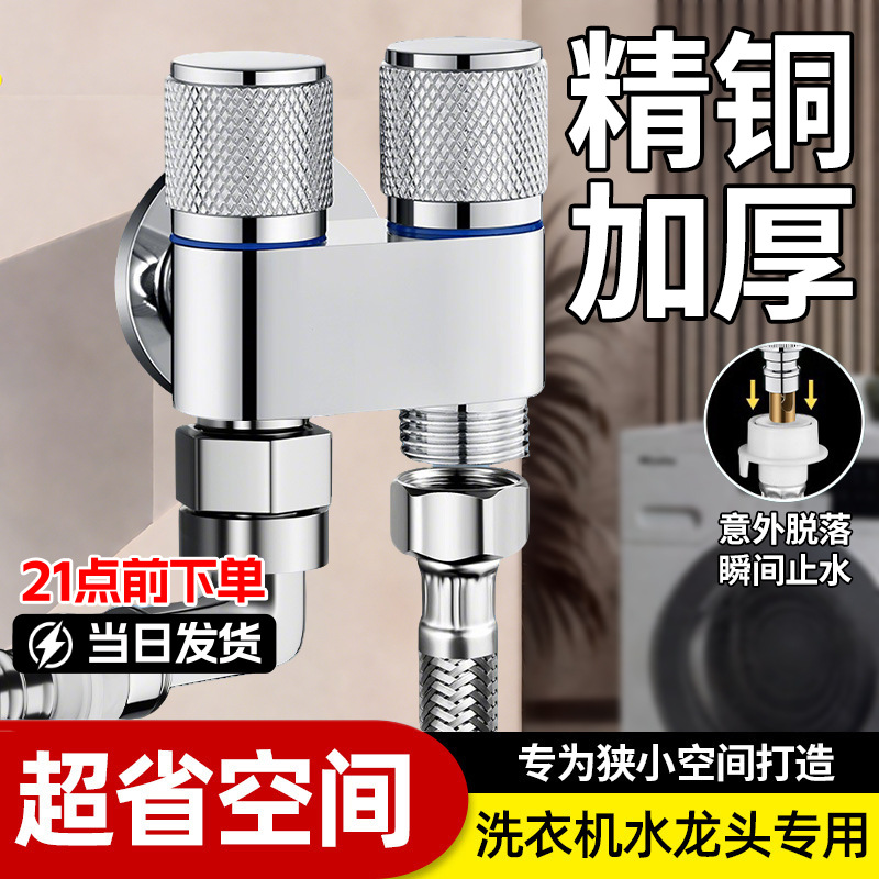 精铜双用角阀一进二出双控双出水洗衣机专用防脱落自动止阀水龙头