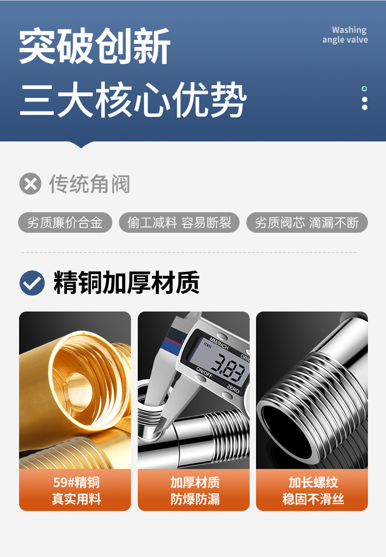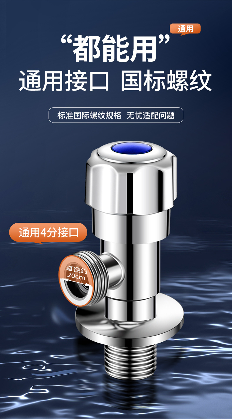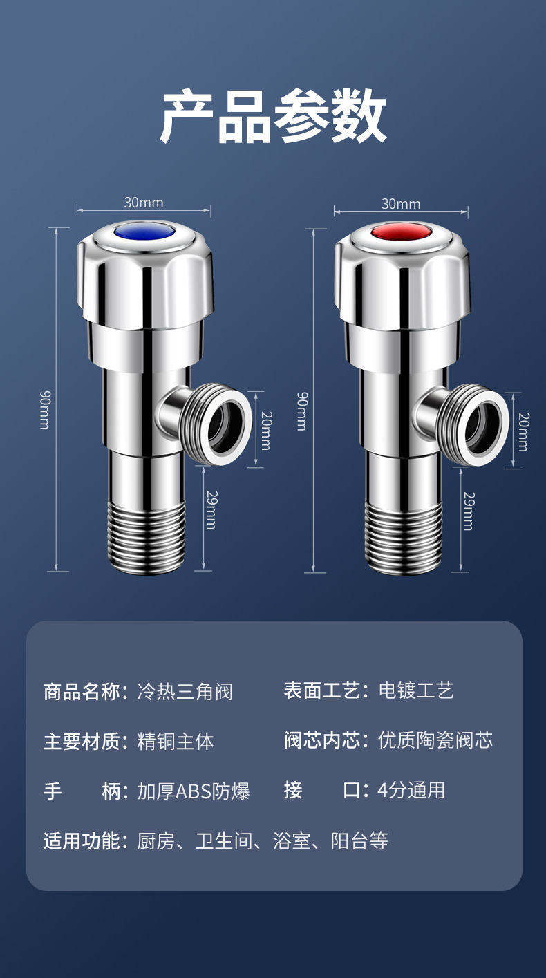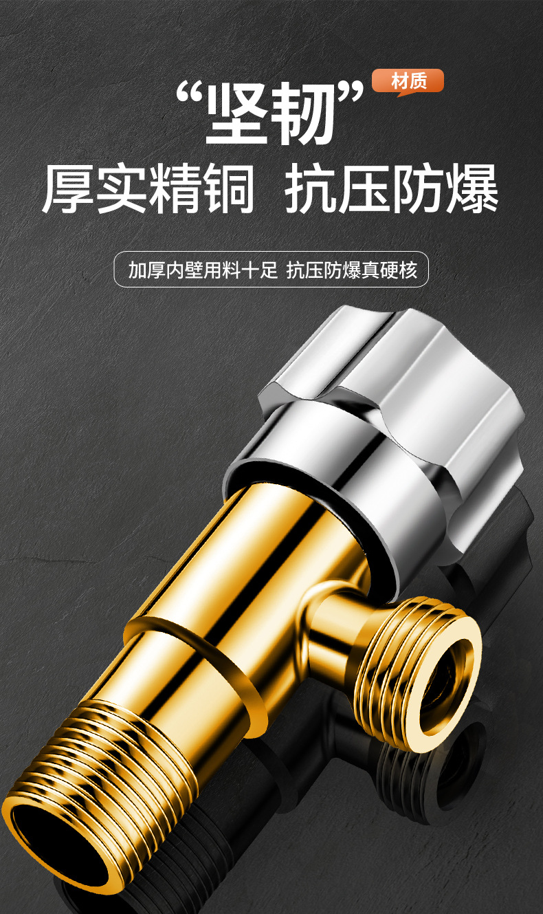 厂家直销三角阀铜加厚角阀马桶冷热水器进水阀4分通用开关角阀