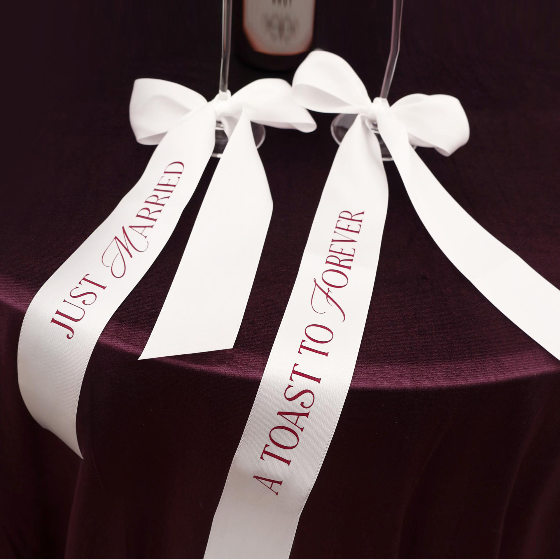 Just Married 装飾ワイングラスリボンシャンパンペアカップと白いリボン結婚式のカスタマイズのためのクロスボーダー限定