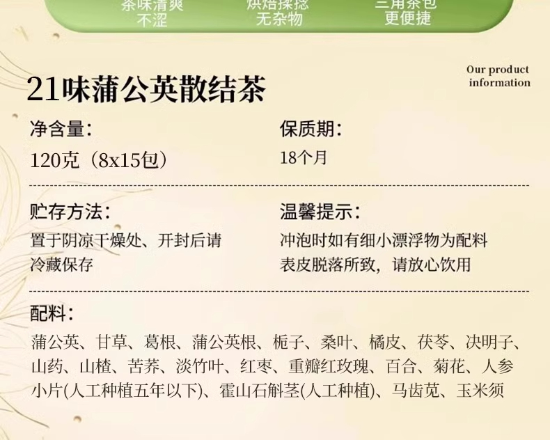 北京同仁堂タンポポカンゾウ茯苓クチナシ茶結節通草花養生茶包正品代件